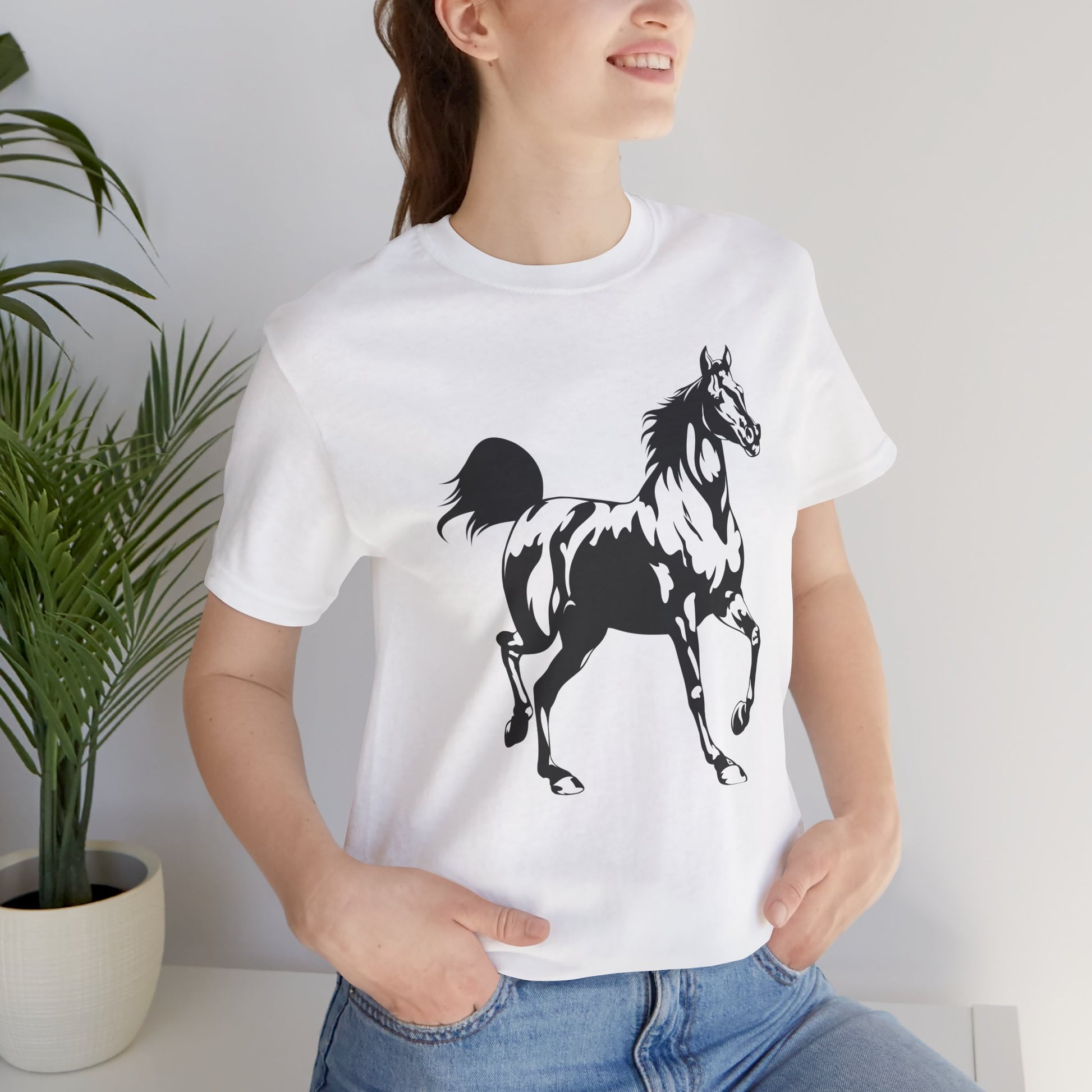 This Unisex Jersey Short Sleeve Tee offers express delivery and features a horse design, making it perfect for horse lovers and equestrian enthusiasts. The lightweight fabric and retail fit make it ideal for casual wear and layering. Suitable for everyday wear, this tee is a great addition to any wardrobe, especially for horse-themed events and equestrian occasions.
