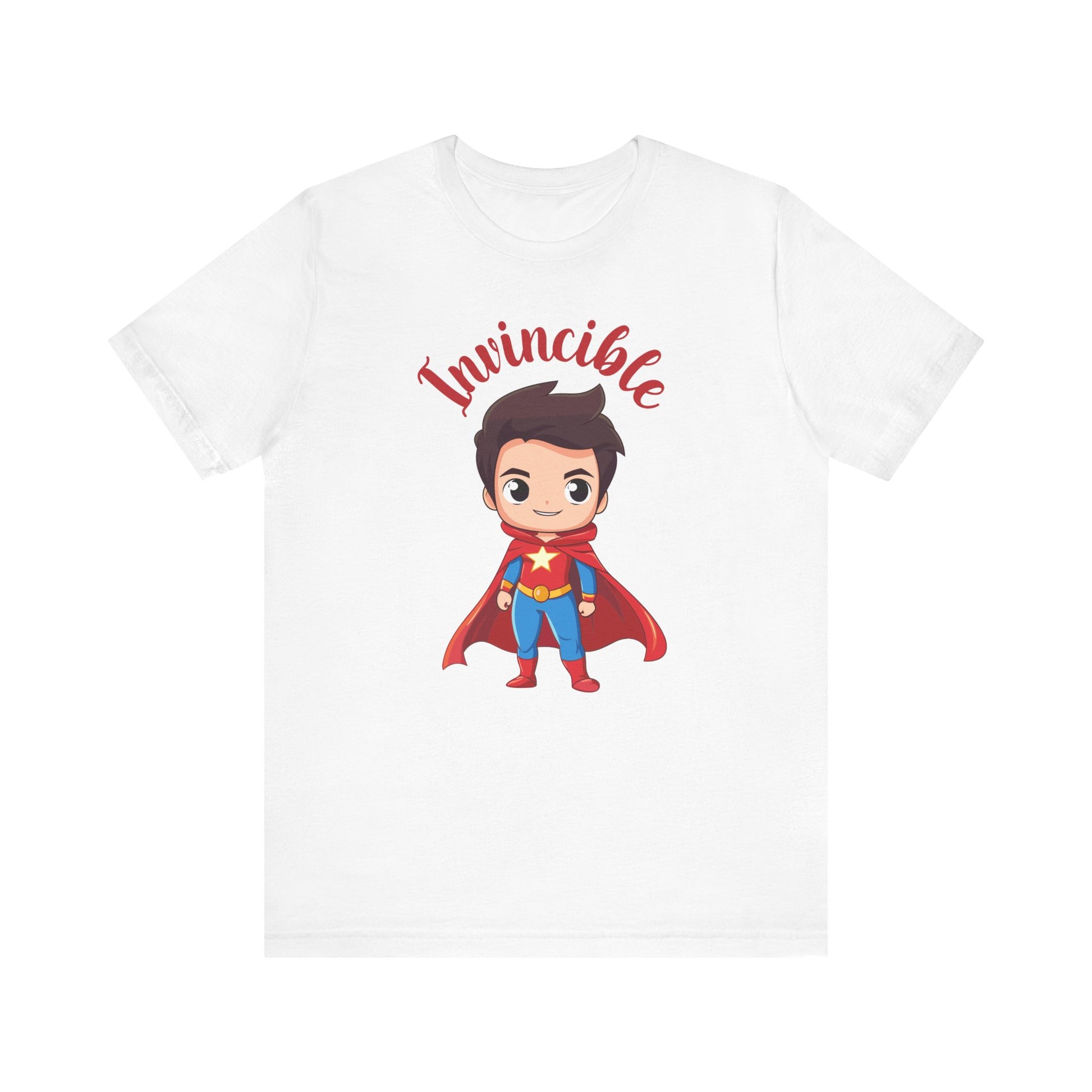 Una camiseta unisex de manga corta INVINCIBLE que transmite confianza y fuerza. Esta camiseta es perfecta para quienes quieren sentirse poderosos e imparables en su vida cotidiana. Es ideal para usarla de manera informal, para hacer ejercicio o como prenda de vestir. Esta camiseta es adecuada para personas que quieren mostrar su resiliencia y determinación.