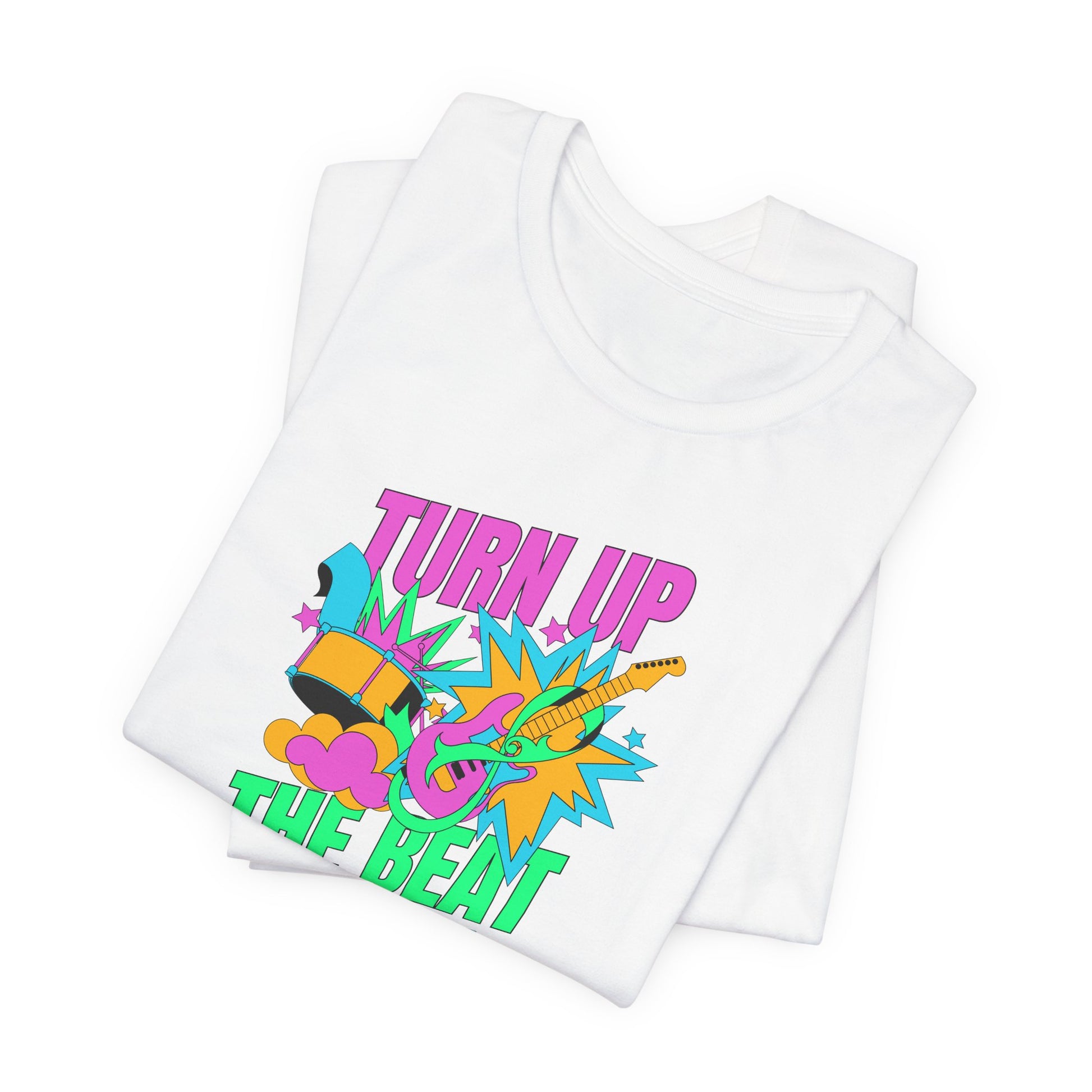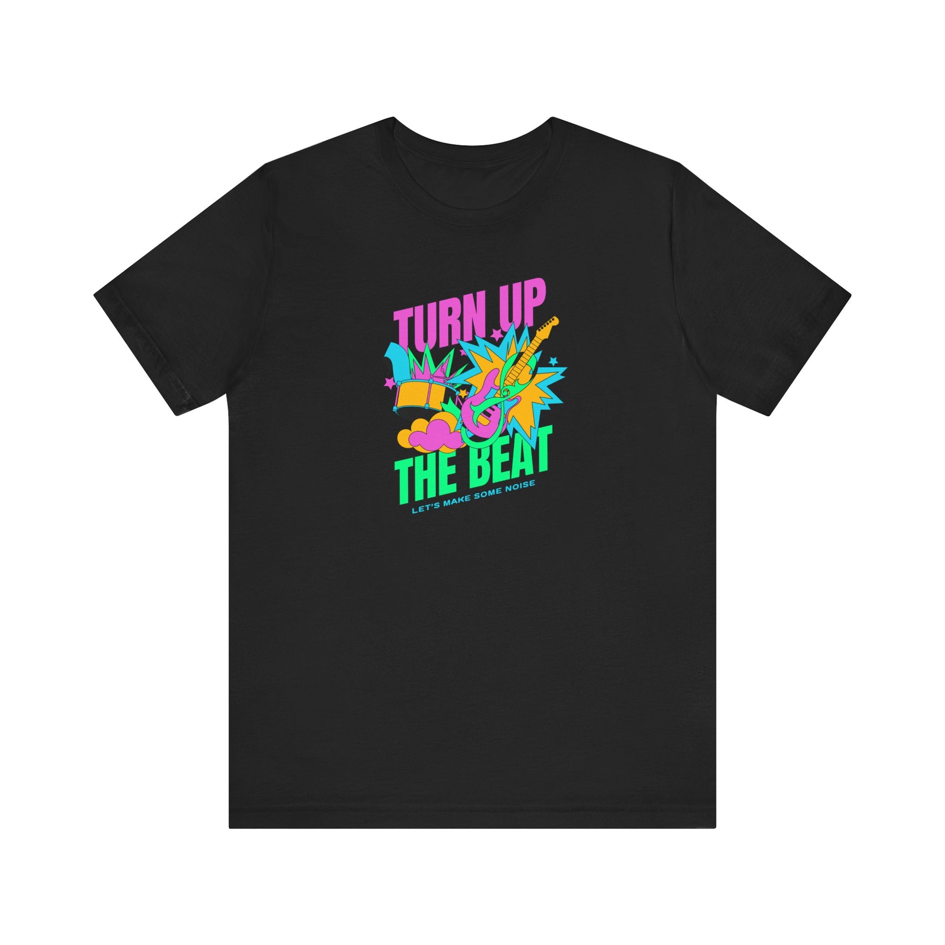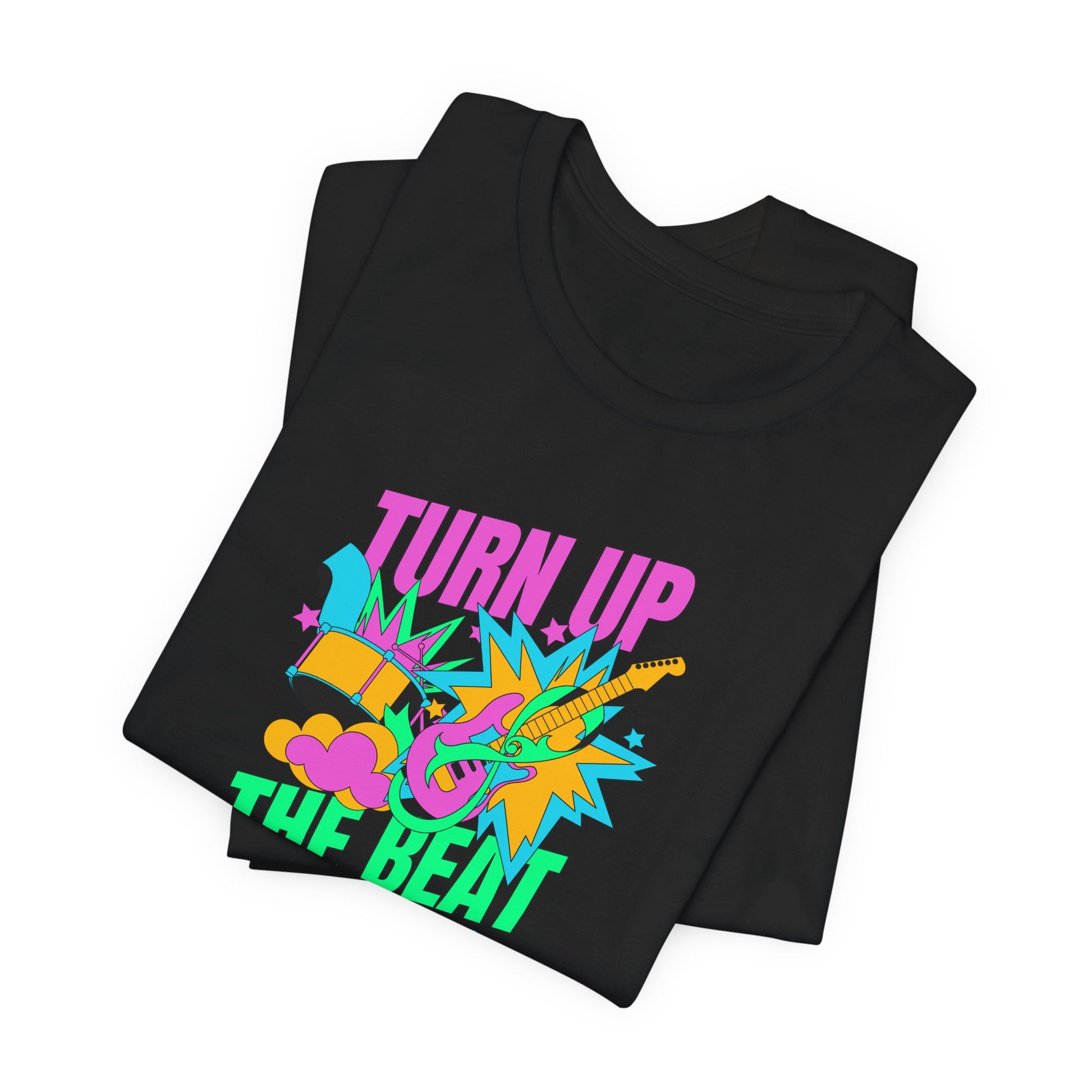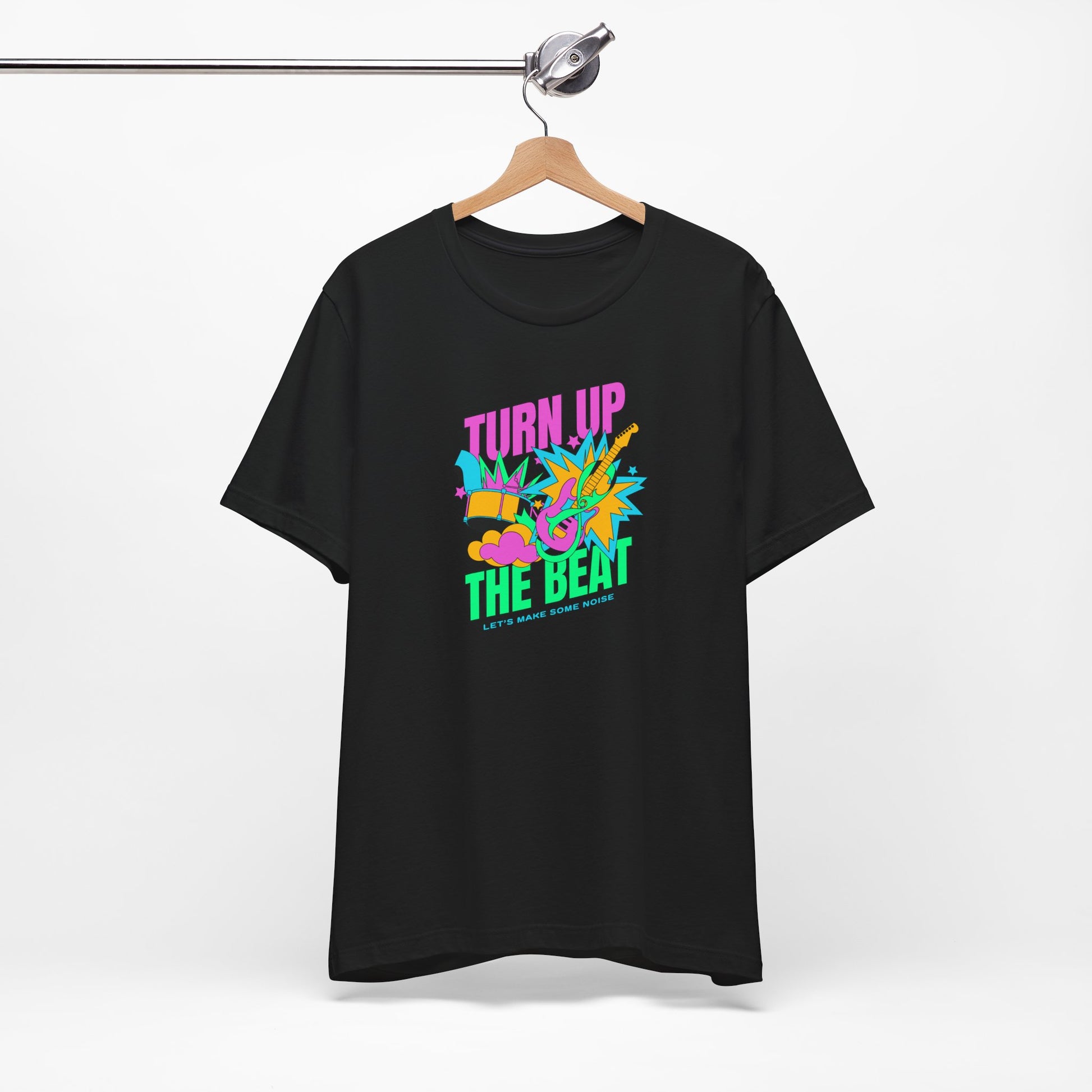 A vibrant graphic tee perfect for music lovers, this Turn Up The Beat Shirt is a unisex music t-shirt that exudes a fun and energetic vibe. It is ideal for casual wear and music-related events, making it a great addition to any music enthusiast's wardrobe.