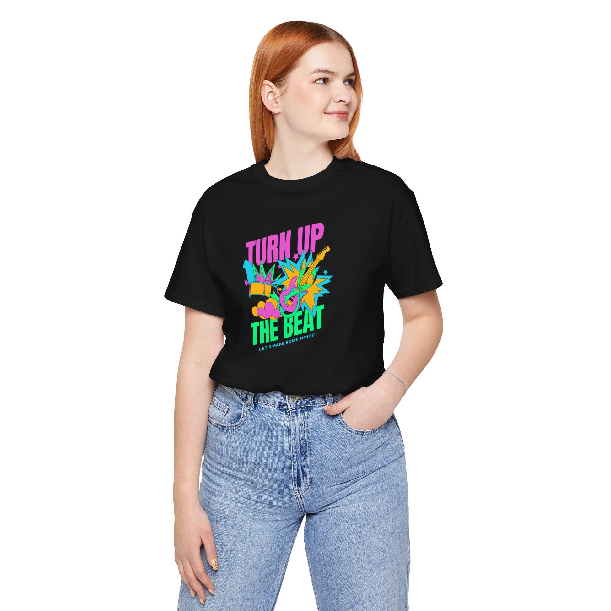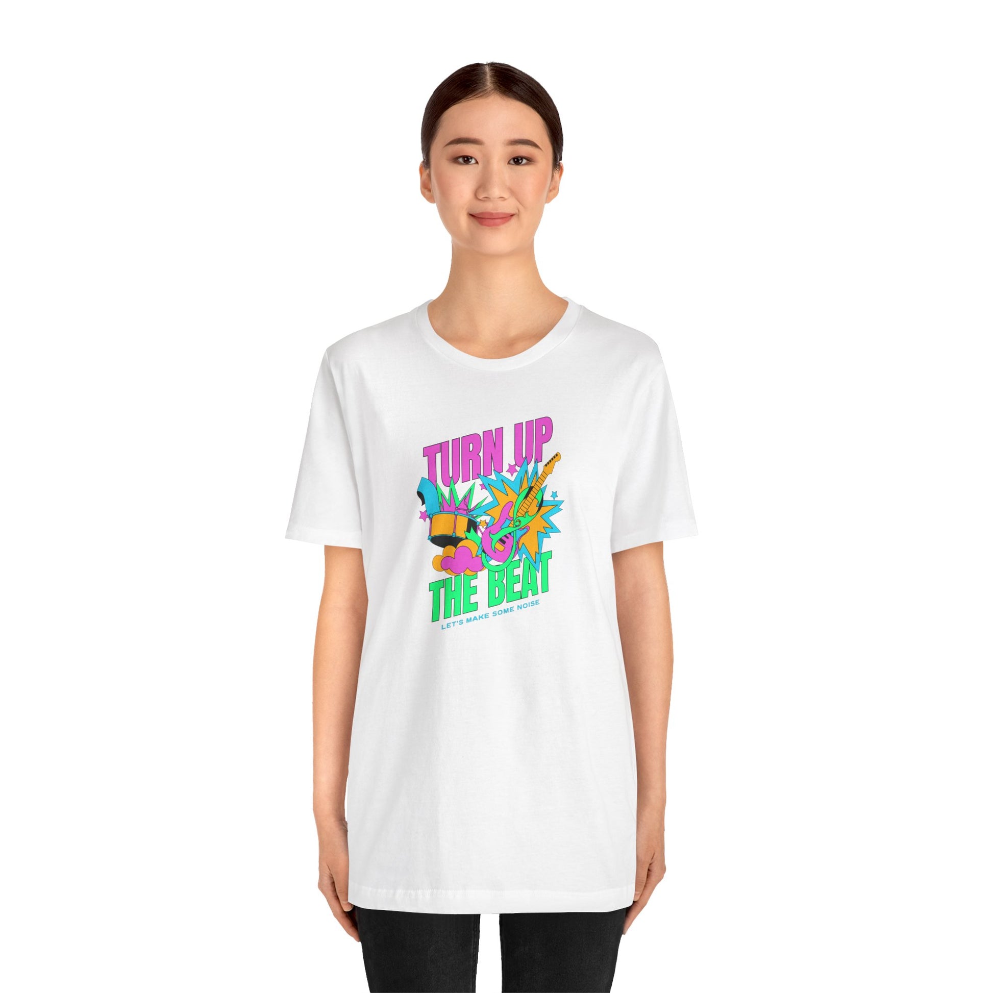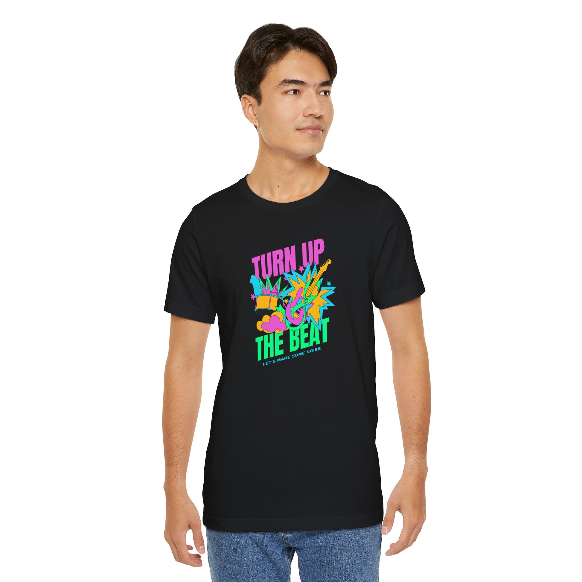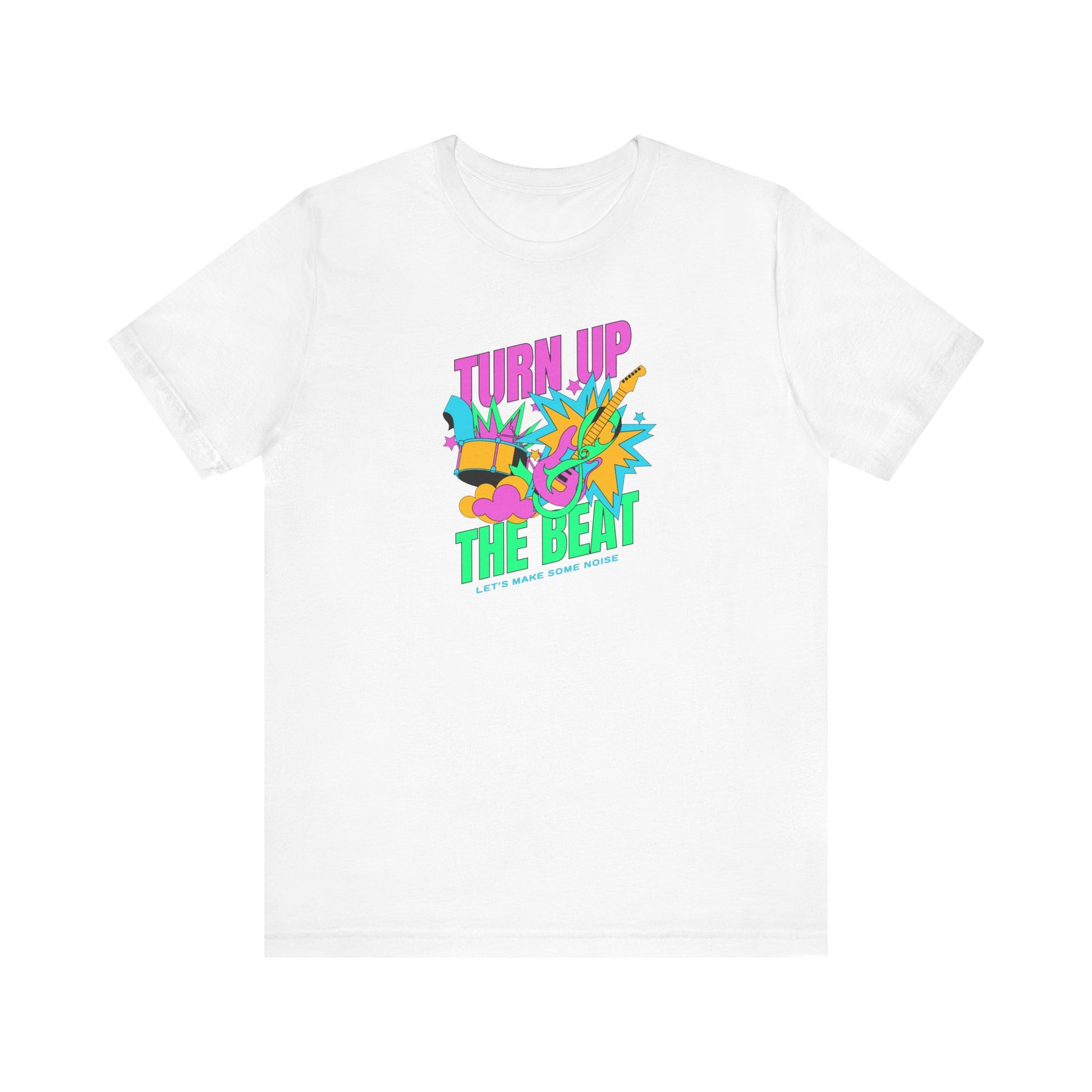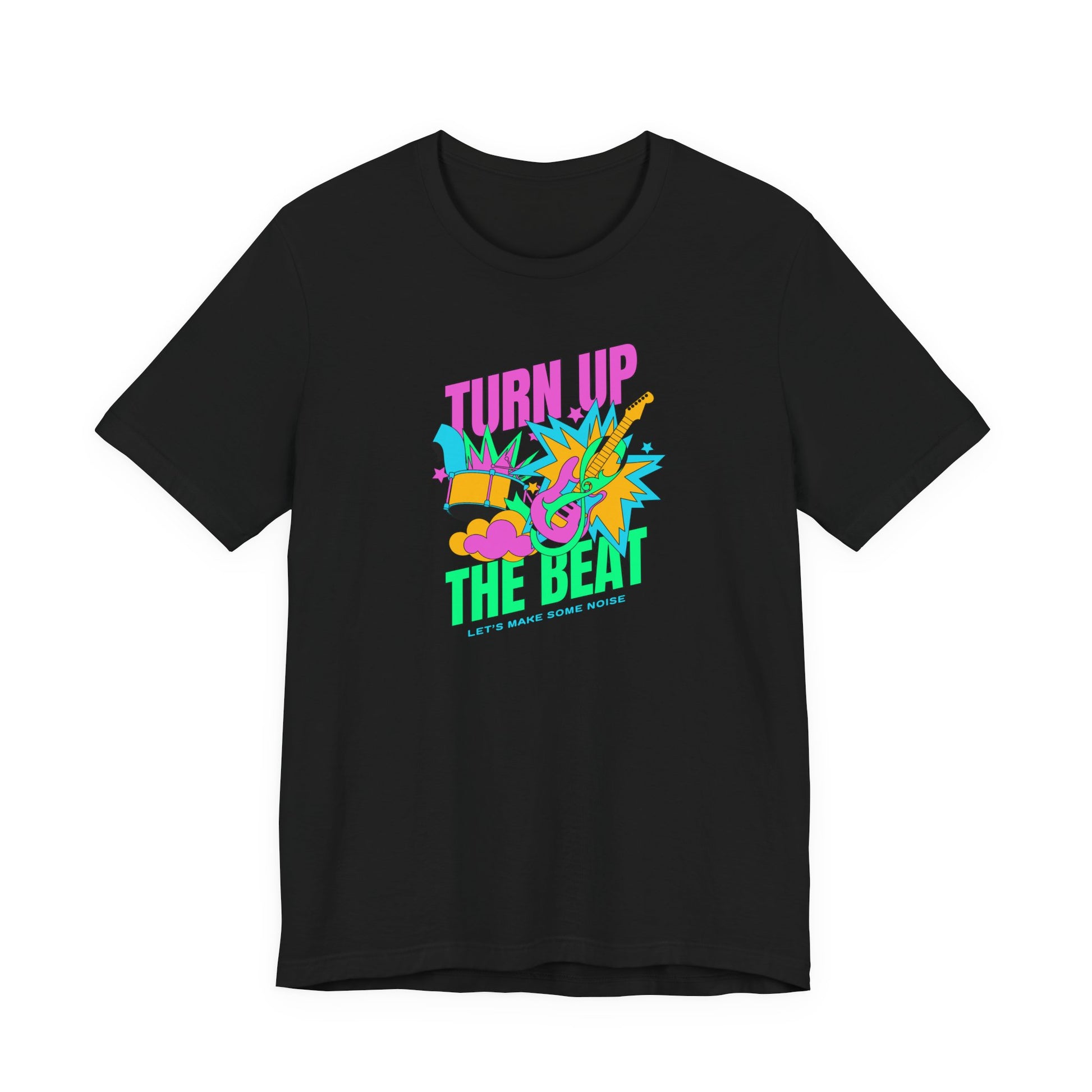 A vibrant graphic tee perfect for music lovers, this Turn Up The Beat Shirt is a unisex music t-shirt that exudes a fun and energetic vibe. It is ideal for casual wear and music-related events, making it a great addition to any music enthusiast's wardrobe.