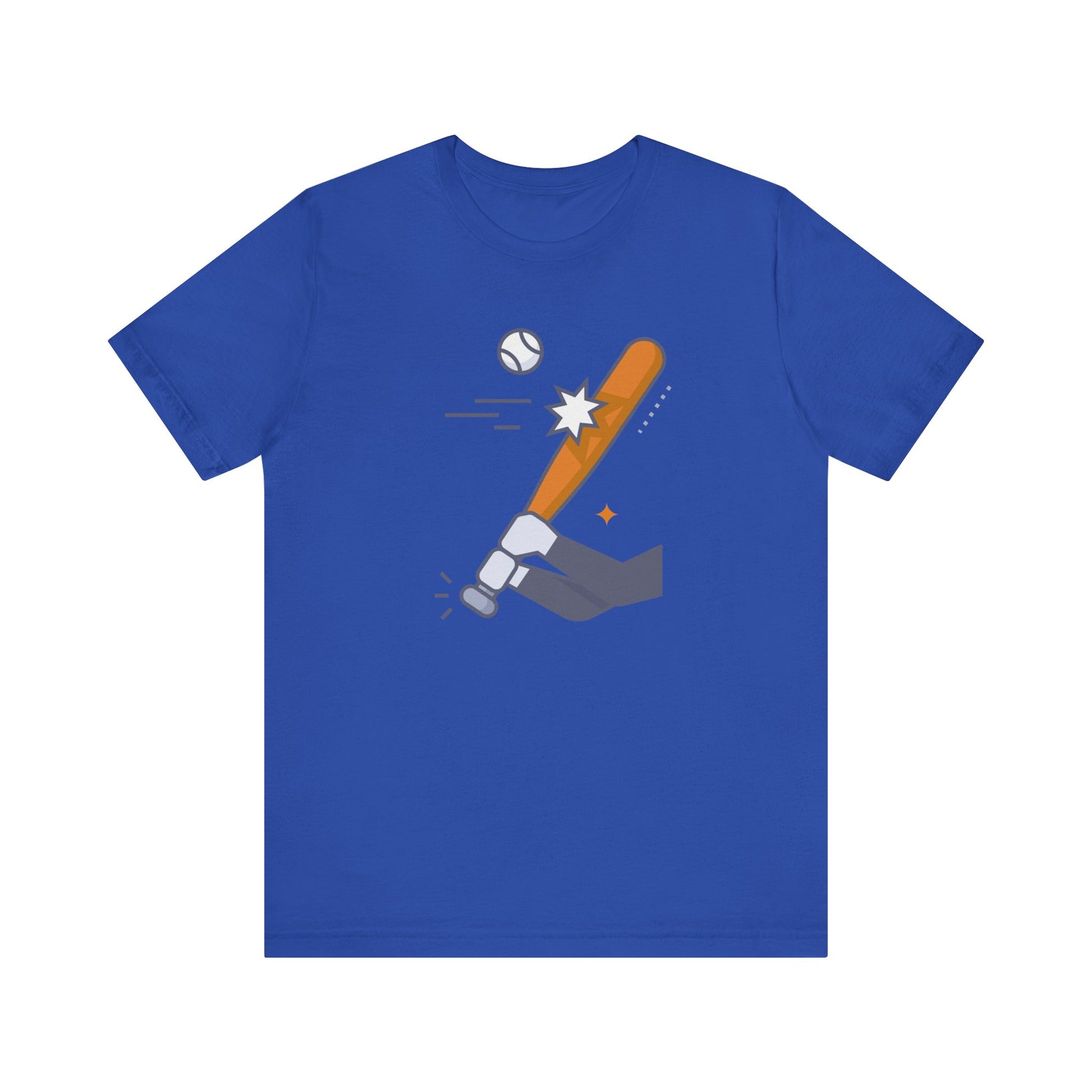 A Unisex Jersey Short Sleeve Tee featuring a baseball bat design. This tee exudes a casual and sporty vibe, perfect for everyday wear or attending baseball games. Ideal for those who enjoy sports or want to add a trendy touch to their outfit. Relevant for baseball season, sports events, casual outings, and everyday wear.