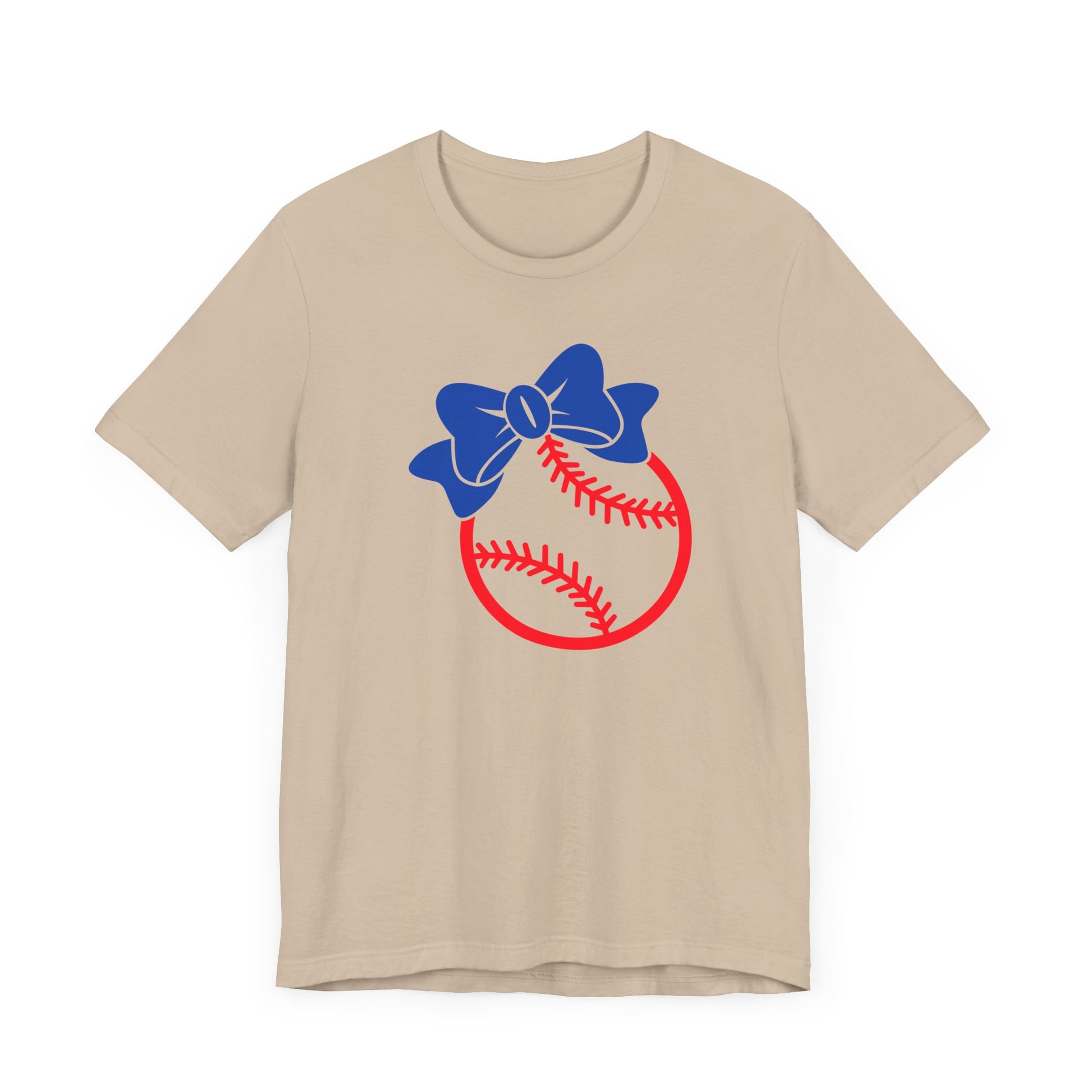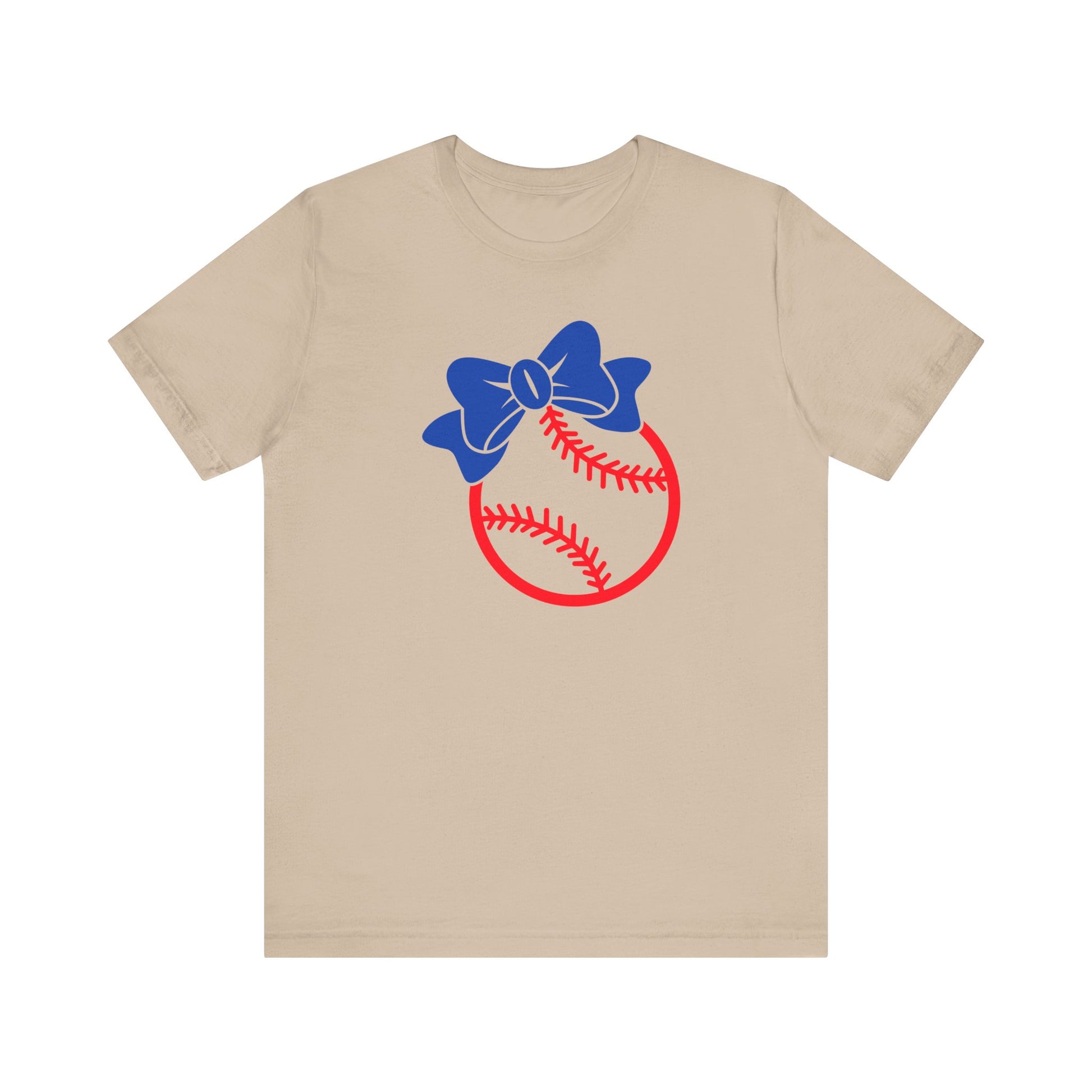 This Unisex Jersey Short Sleeve Tee with a BASEBALL BOW design exudes a casual and sporty vibe, perfect for everyday wear and sports enthusiasts. It is relevant for baseball fans and can be worn during baseball games, sports events, or casual outings.