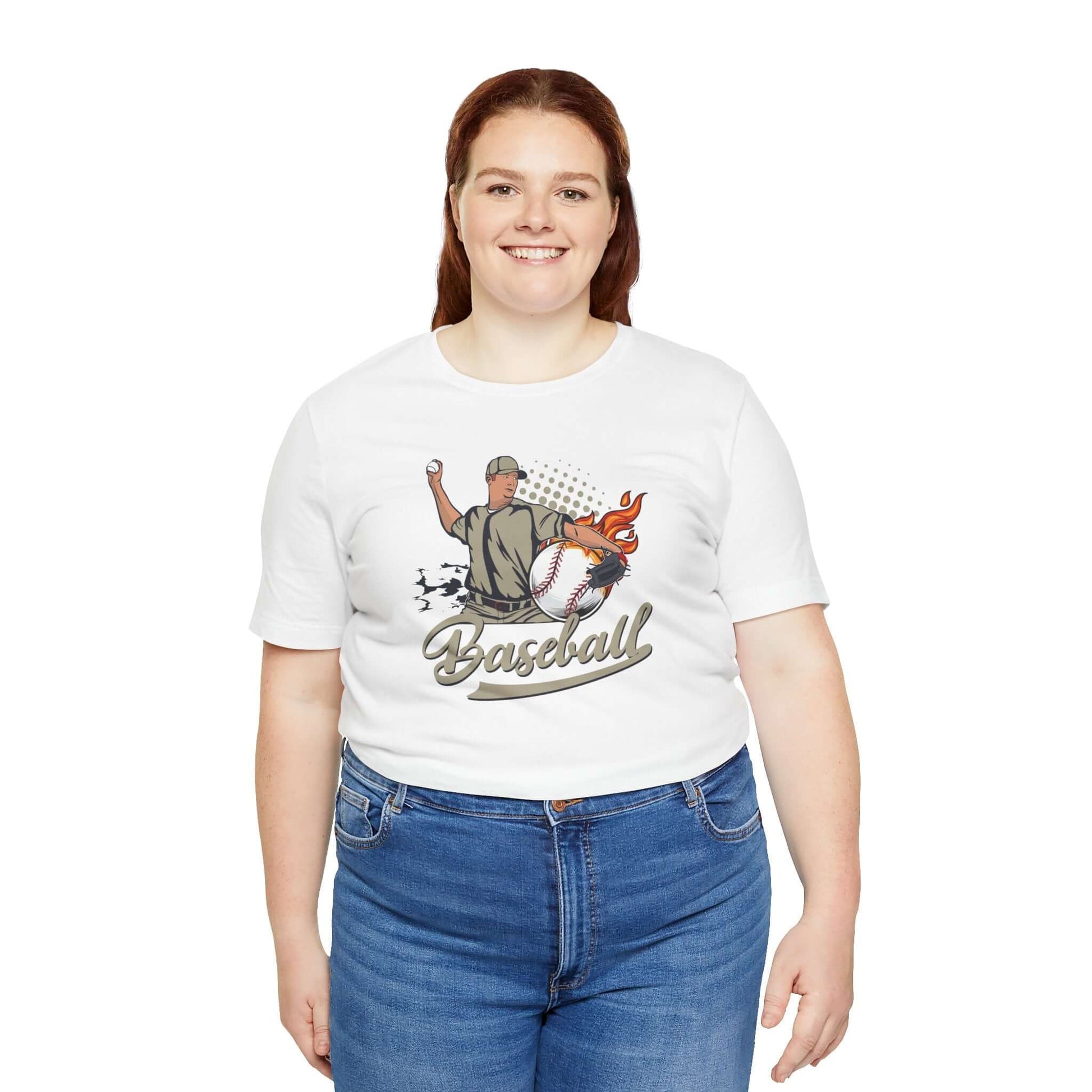 A Baseball Graphic Tee perfect for sports lovers, this Unisex T-Shirt is ideal for game days, casual wear, and sports apparel. It gives a sporty vibe and fits seamlessly into a buyer's wardrobe. Relevant for sports enthusiasts, perfect for gifting or wearing for game day celebrations.