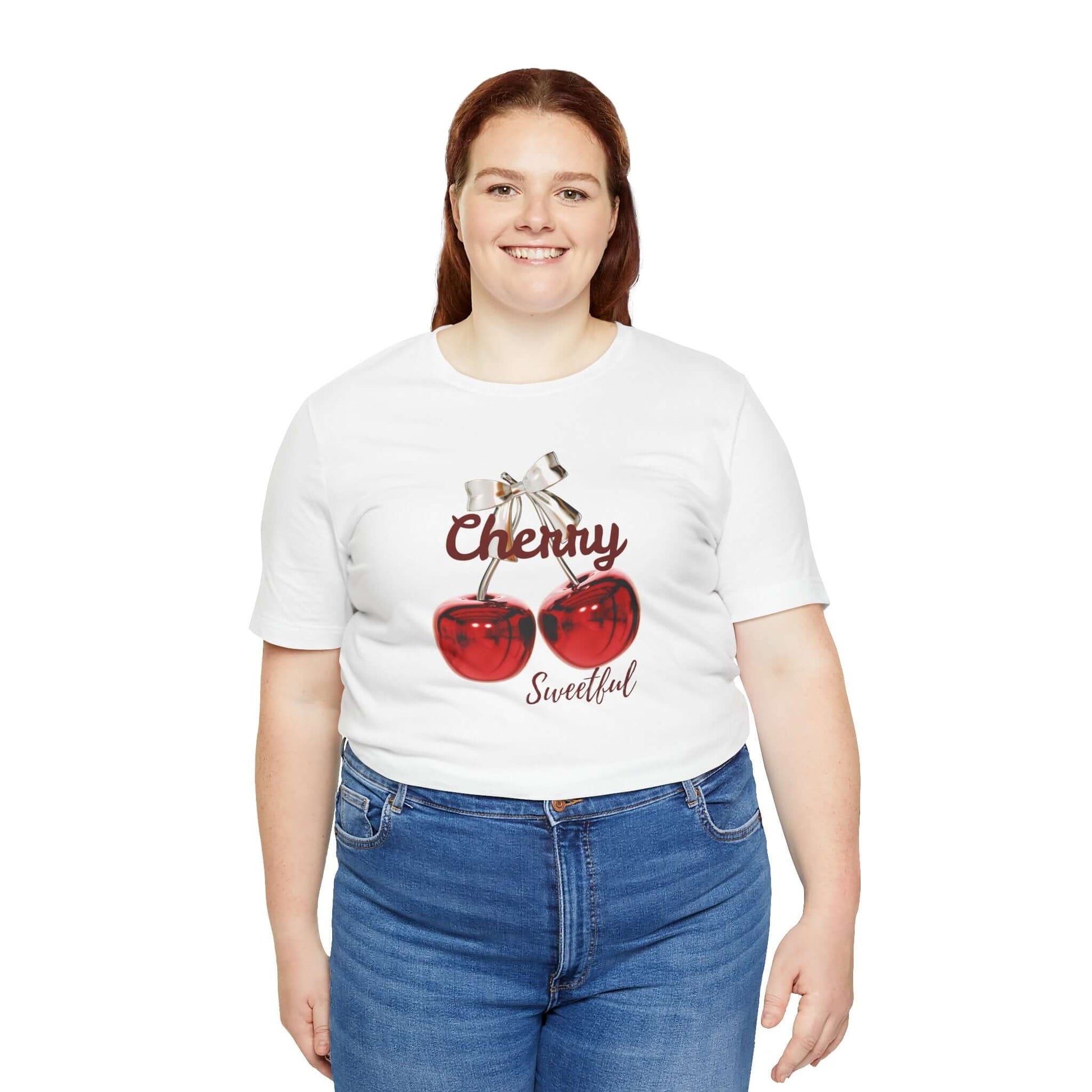 The Cherry Sweetful T-Shirt is a lightweight and breathable garment perfect for active and leisure wear. With a retail fit and classic crew neckline, it is versatile for casual and semi-formal settings. Made with 100% Airlume combed and ring-spun cotton, it is easy to layer and accessorize.