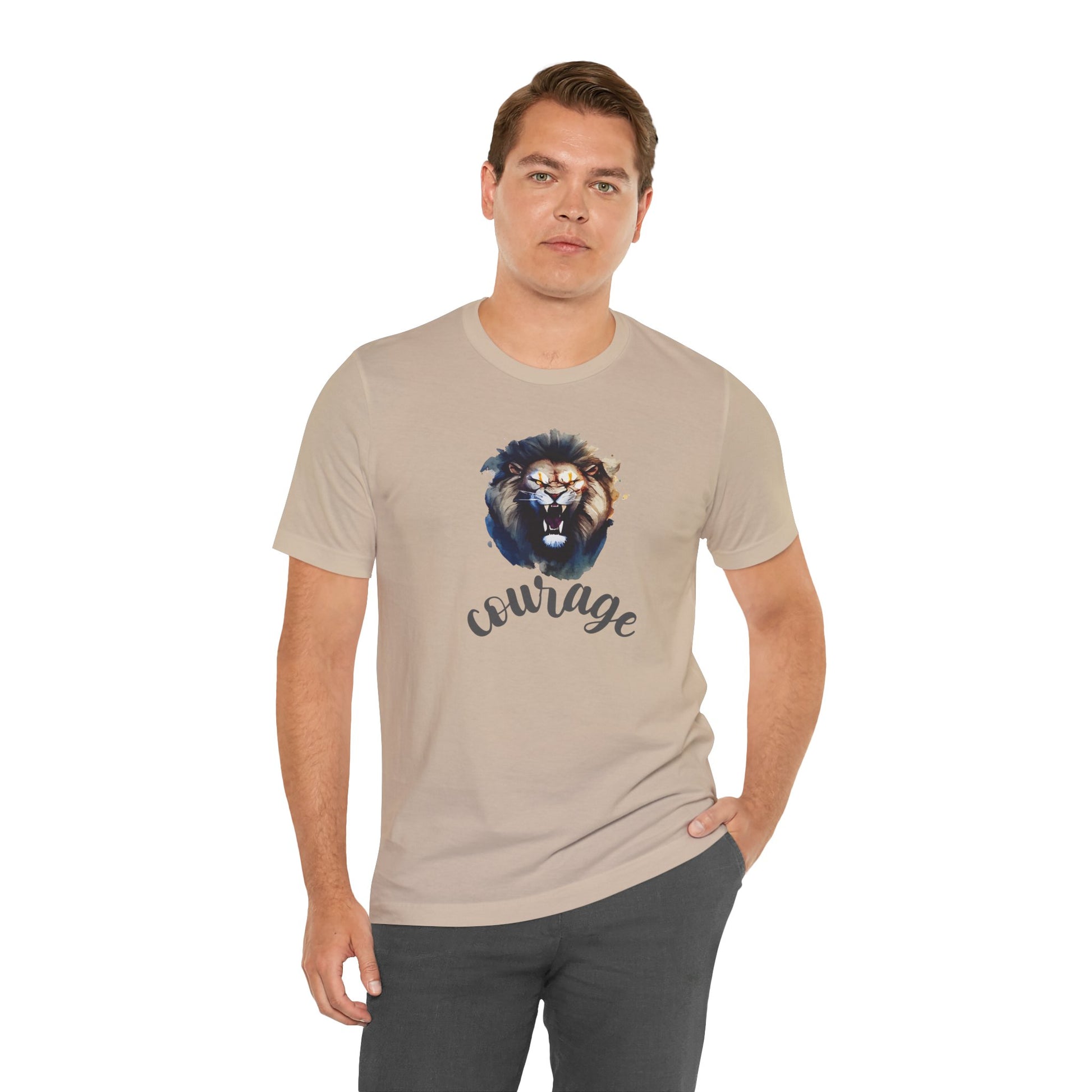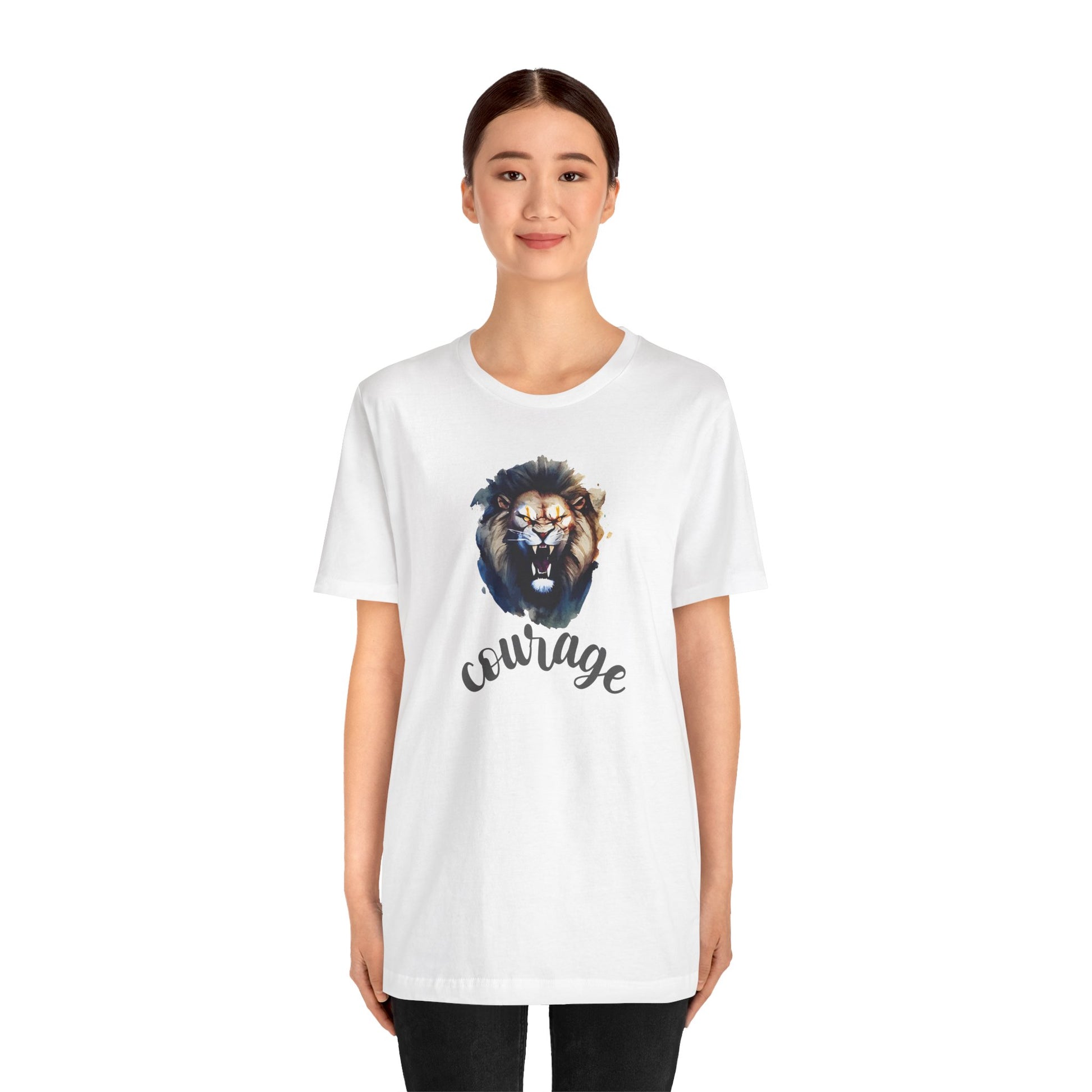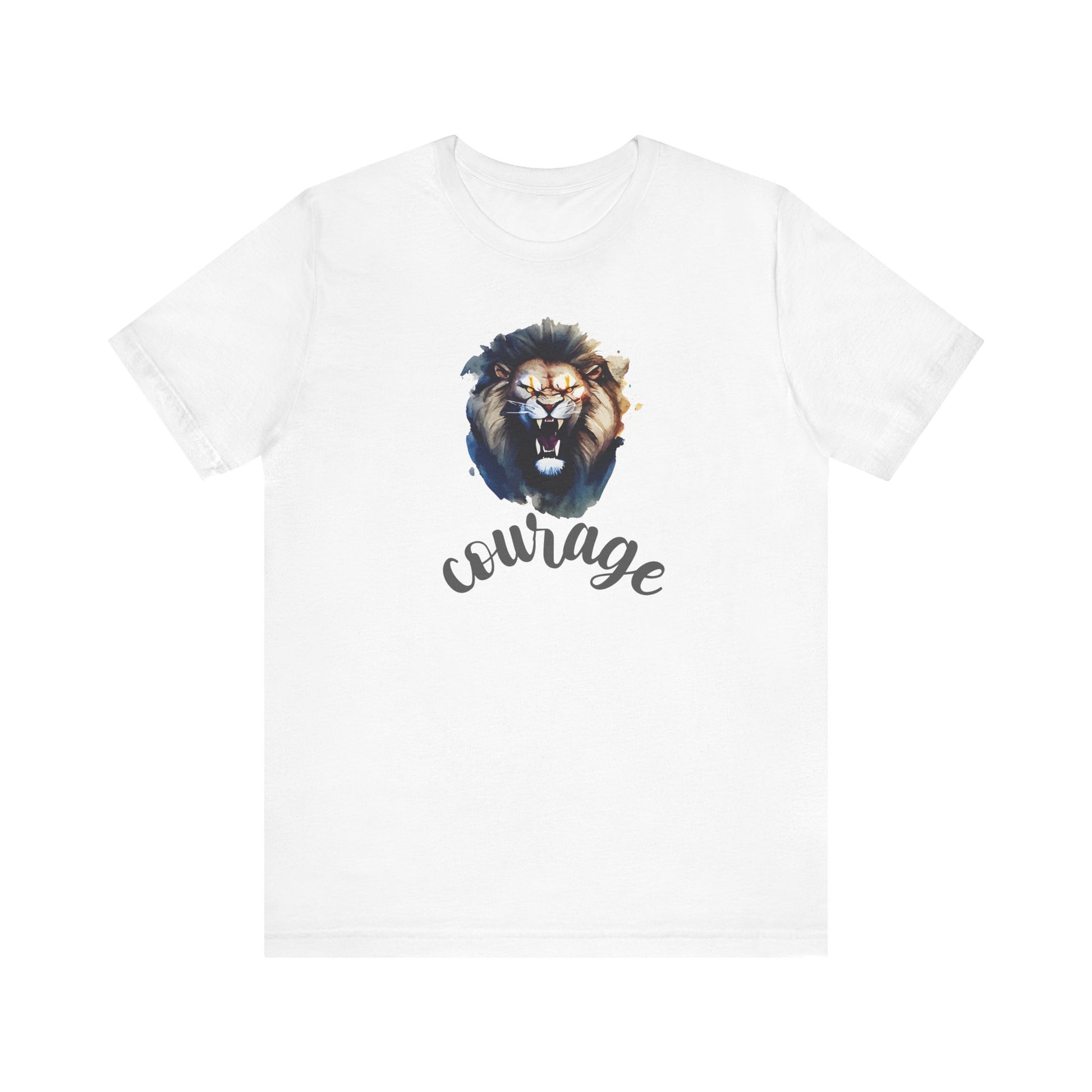 This Unisex Jersey Short Sleeve Tee features a Courage Lion design, giving off a bold and empowering vibe. It is perfect for those who seek to exude confidence and strength in their everyday style. Ideal for gifting during birthdays, graduations, or as a motivational present.