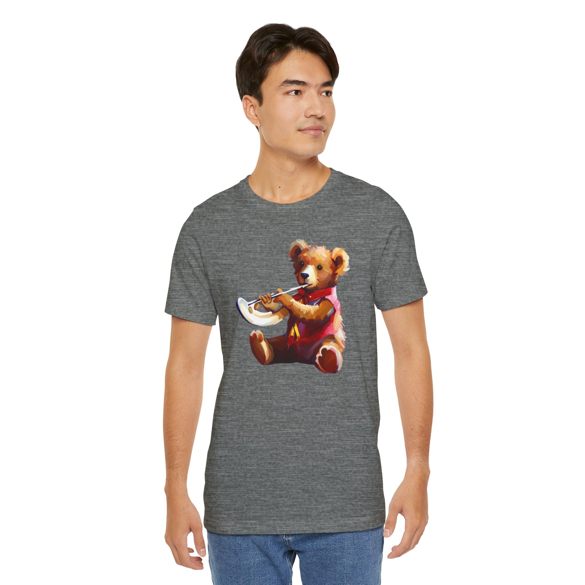 Cute Bear Playing flute Unisex Tee - Perfect Gift for Music Lovers. This Tee gives off a fun and whimsical vibe, perfect for casual wear. Ideal for music enthusiasts and animal lovers alike, great for birthdays, holidays, and special occasions.