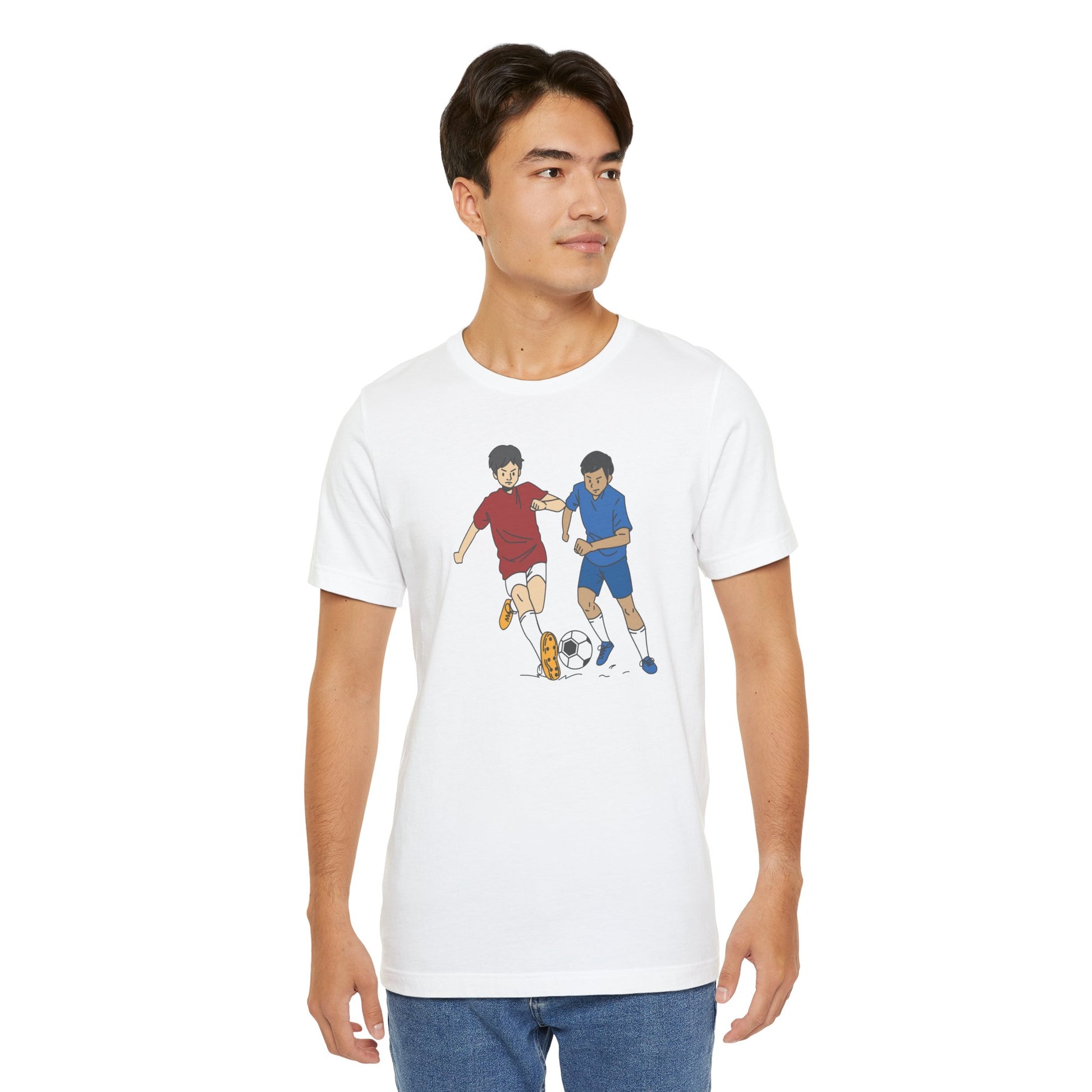 Ce t-shirt à manches courtes unisexe en jersey est parfait pour exprimer votre amour du football et du soccer. L'option de livraison express en fait un excellent choix pour les jours de match de dernière minute. Fabriqué en 100 % coton peigné et filé à l'anneau Airlume, ce t-shirt léger est respirant et idéal pour les vêtements de sport. La coupe ajustée et l'encolure ras du cou classique le rendent polyvalent pour les environnements décontractés et semi-formels. Convient aux fans de football et de soccer à la recherche d'une tenue de match confortable et élégante.