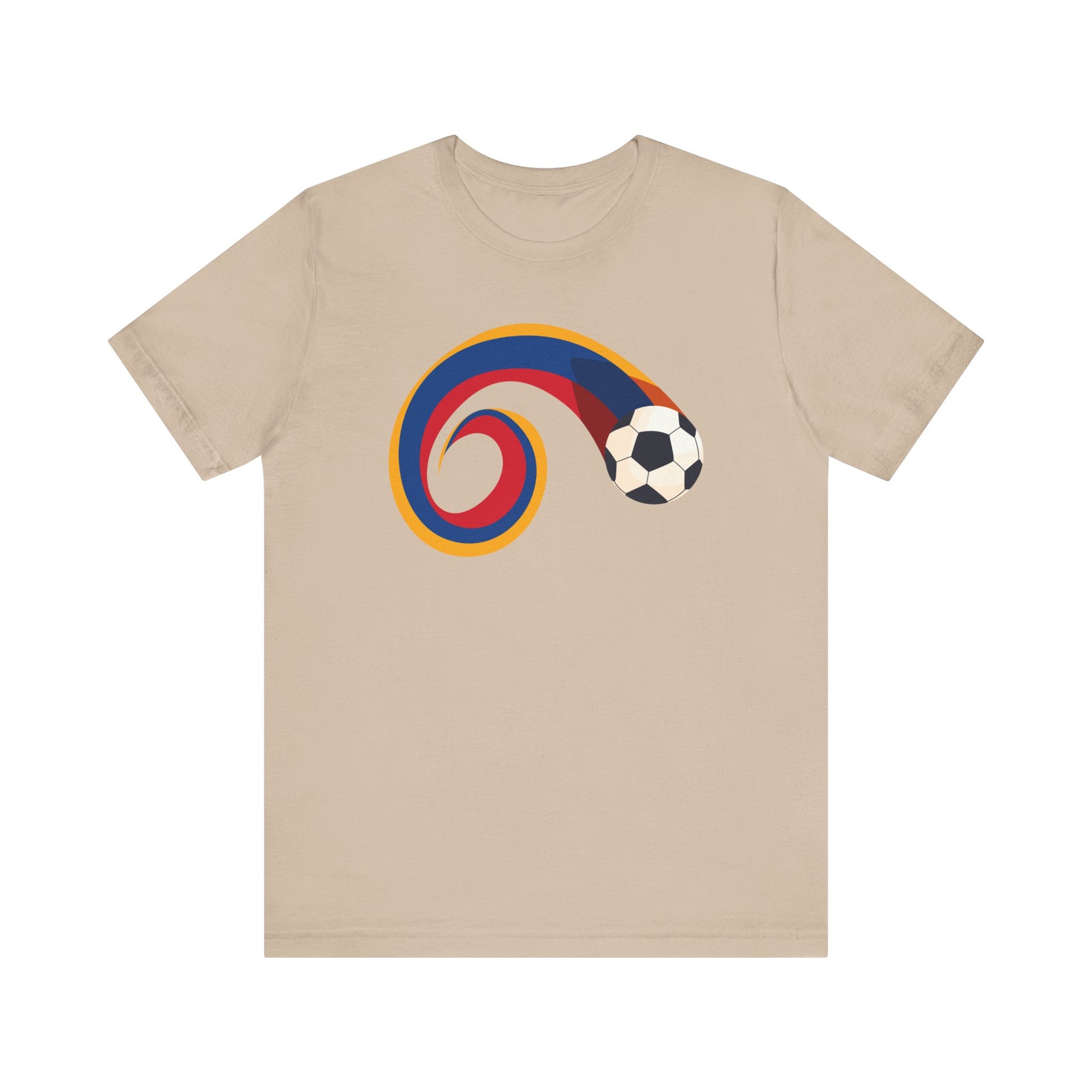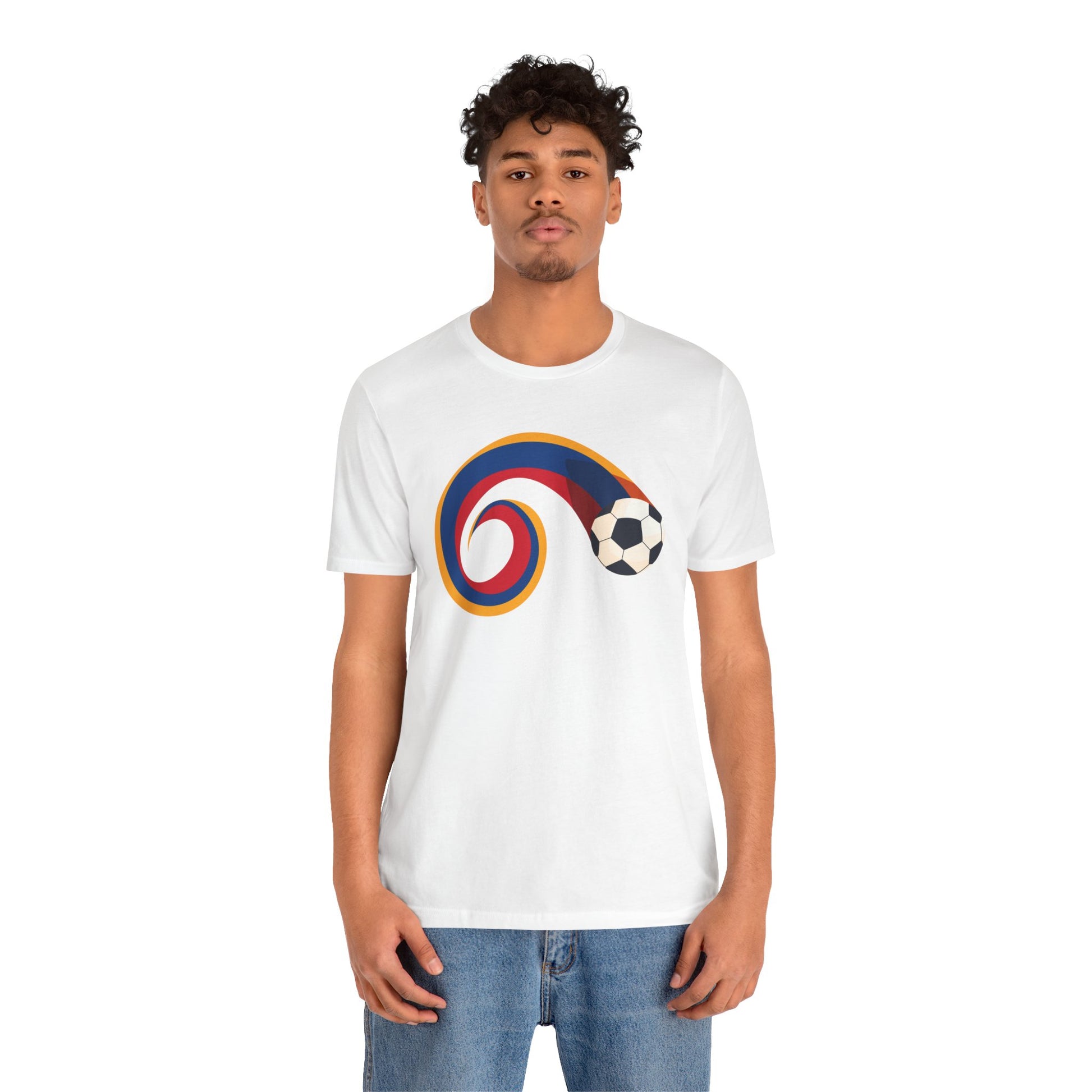 This Unisex Jersey Short Sleeve Tee is perfect for those who love football or soccer. With express delivery available, this lightweight tee made with 100% Airlume combed and ring-spun cotton is ideal for active and leisure wear. The retail fit and classic crew neckline make it suitable for casual and semi-formal settings, perfect for accessorizing. The tear-away label and ethical manufacturing practices make it a comfortable and sustainable choice.