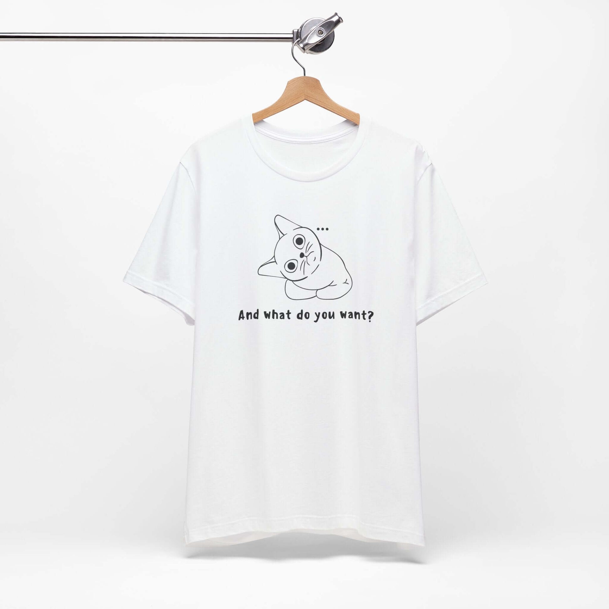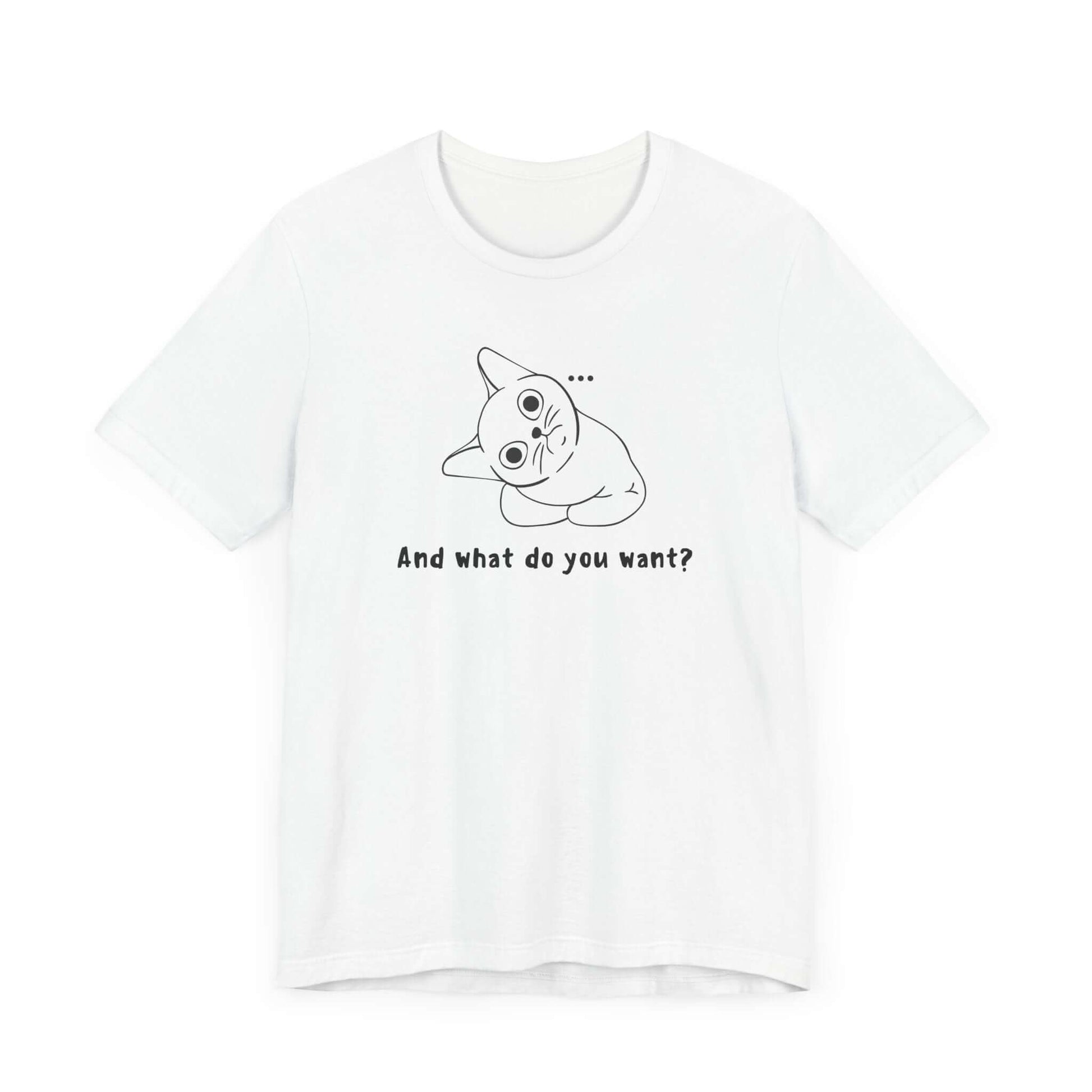 Funny Cat Tee - "And What Do You Want?" Unisex Jersey Short Sleeve T-Shirt