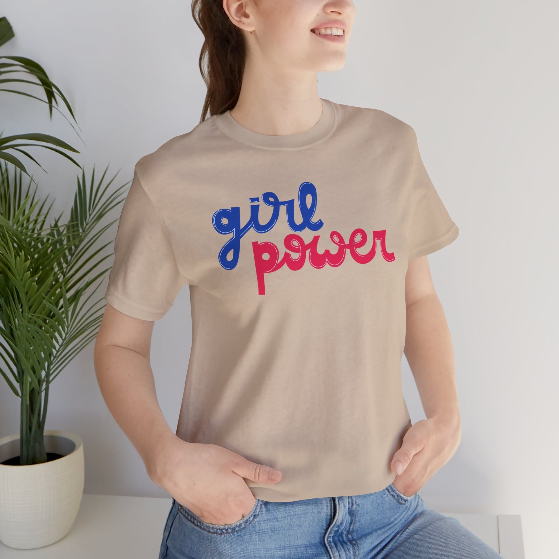 Show your GIRL POWER with this Unisex Jersey Short Sleeve Tee, perfect for express delivery. The lightweight fabric and retail fit make it versatile for casual and semi-formal settings, great for layering and accessorizing. Relevant to those celebrating feminism and empowerment.