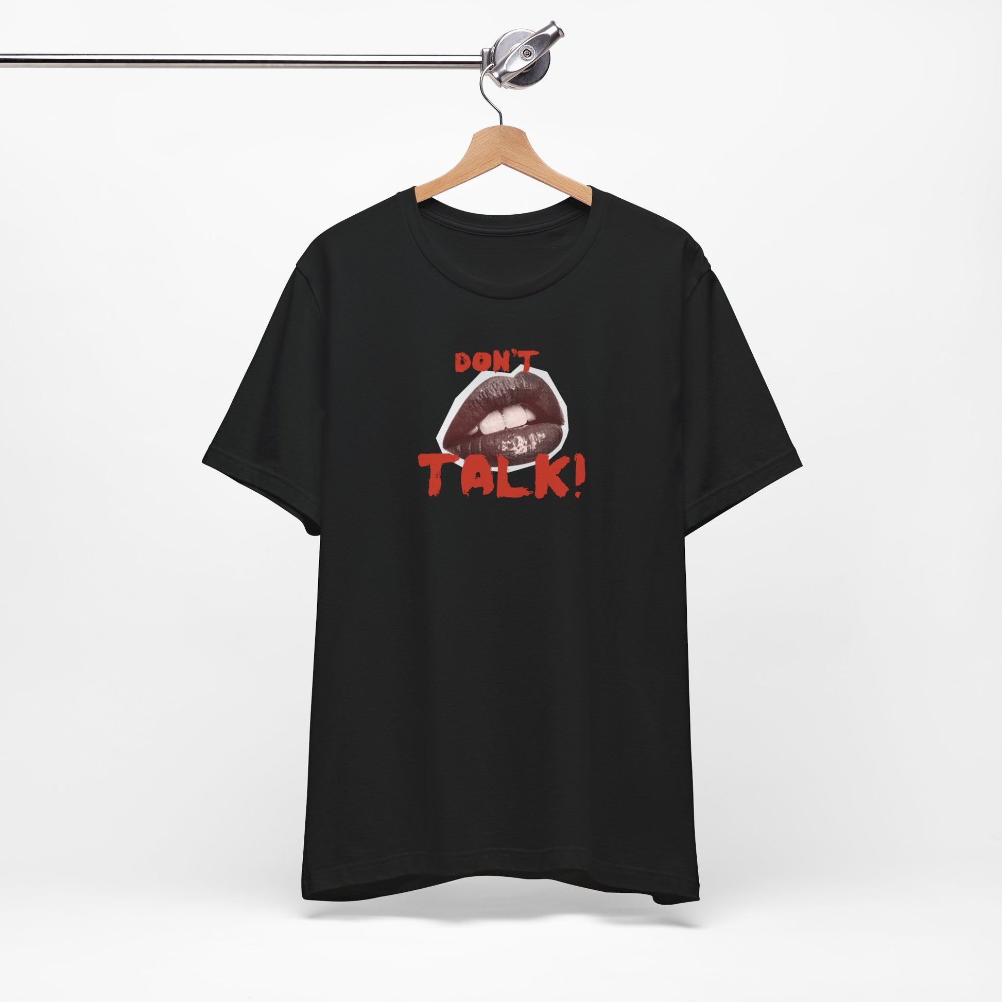 Make a bold statement with this graphic tee featuring the phrase 'Don't Talk'. This unisex casual wear is perfect for adding a touch of attitude to your outfit. It's ideal for adults looking for a versatile and comfortable tee for everyday wear or social occasions.