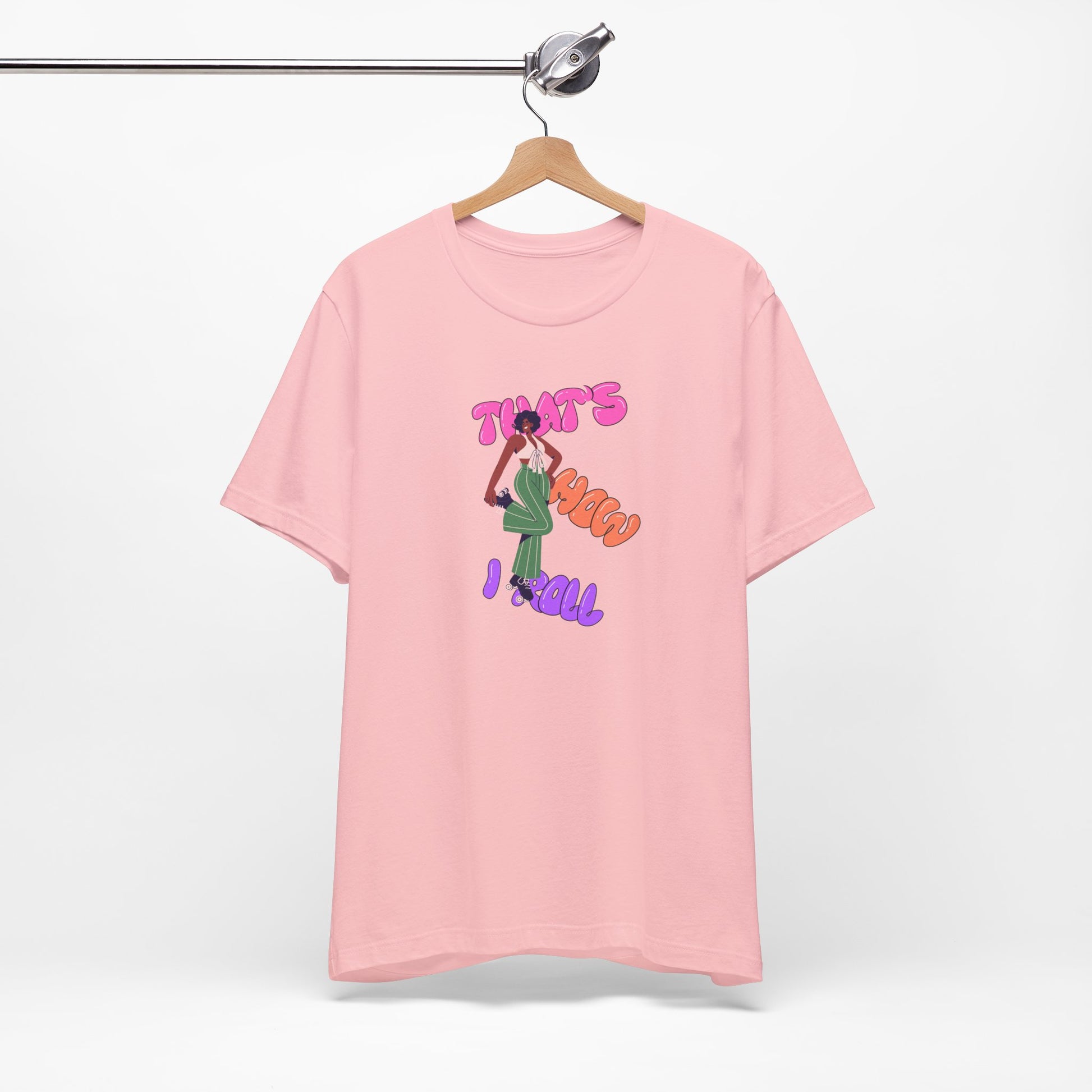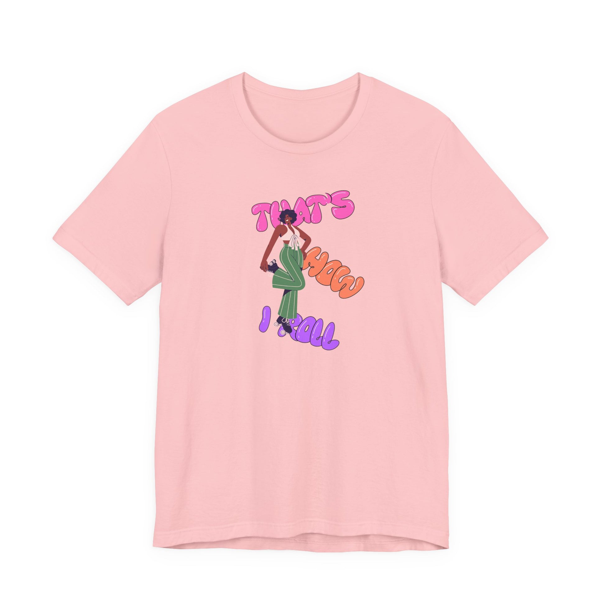 Playful Graphic Tee with 'That's How I Roll' Design, trendy short sleeve shirt. This T-Shirt exudes a fun and laid-back vibe, perfect for casual outings and everyday wear. Ideal for those who enjoy expressing their personality through their clothing. Relevant for holidays like casual Fridays, game nights, and outdoor gatherings.
