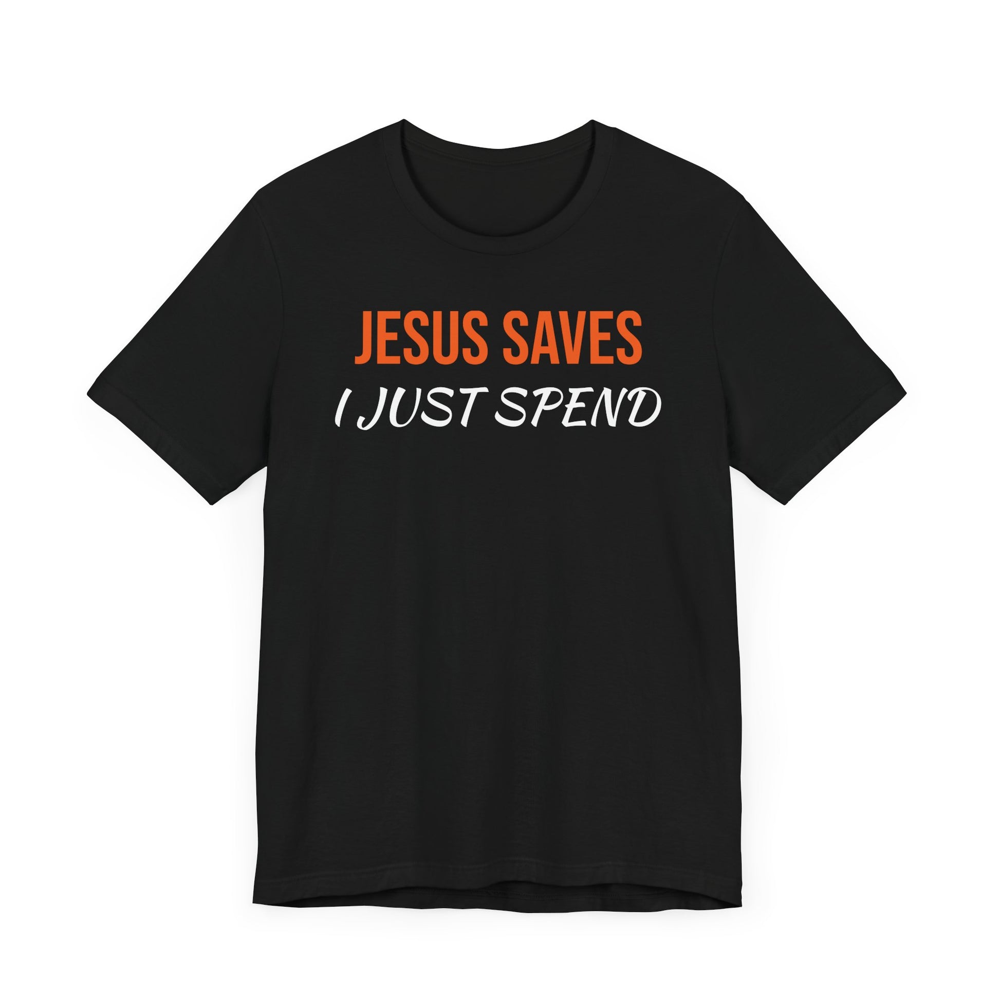 Humorous Christian Unisex Tee - "Jesus Saves, I Just Spend"