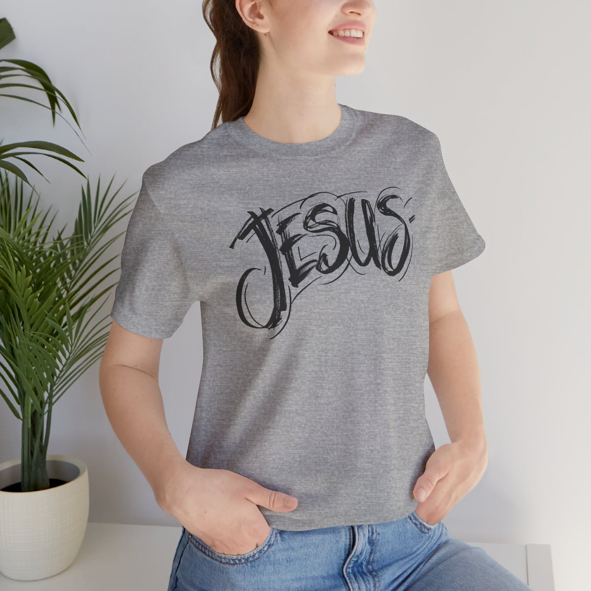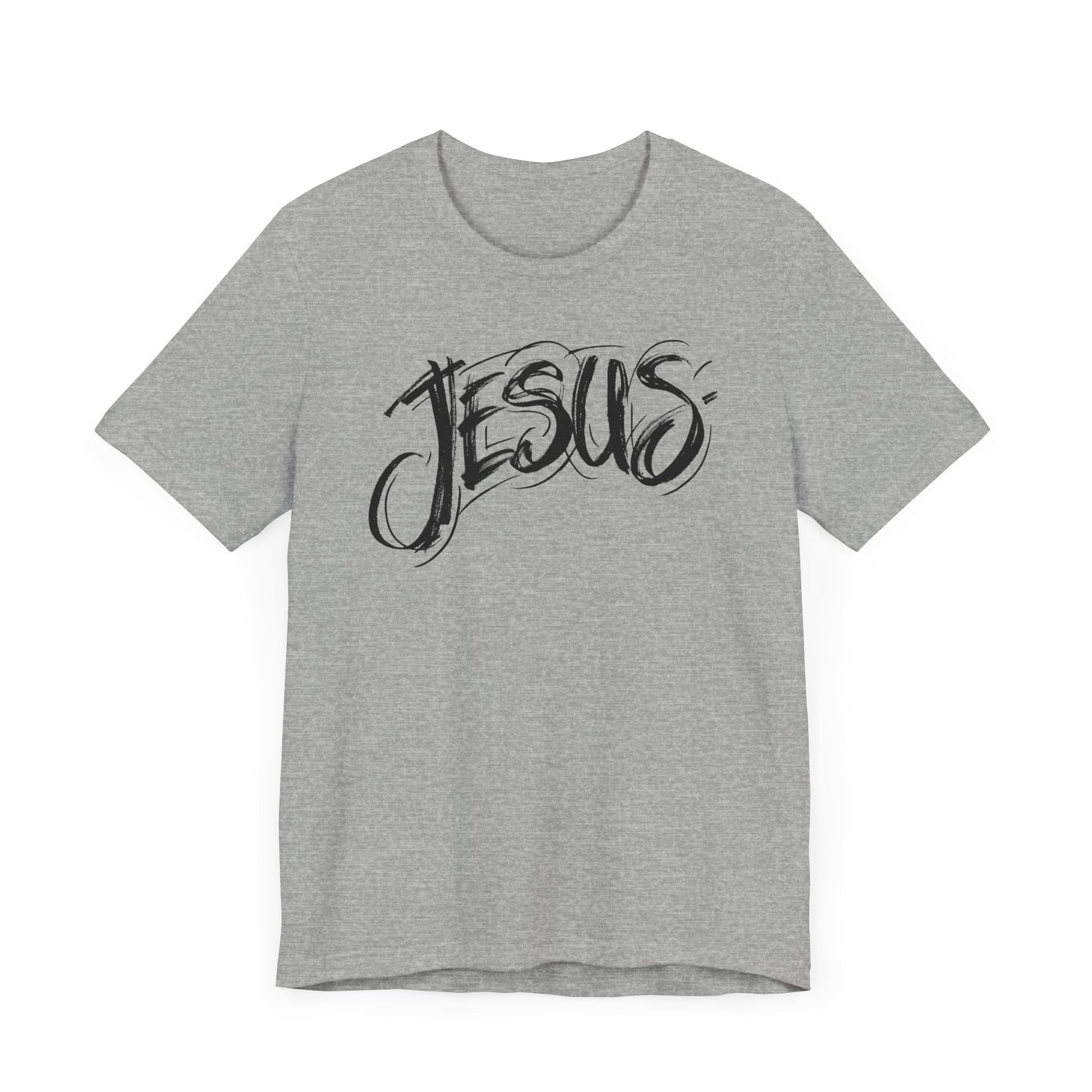 Un t-shirt à manches courtes unisexe confortable et polyvalent, avec un motif JÉSUS audacieux. Parfait pour tous ceux qui cherchent à mettre en valeur leur foi de manière élégante. Idéal pour les tenues décontractées, les rassemblements religieux et les fêtes chrétiennes.
