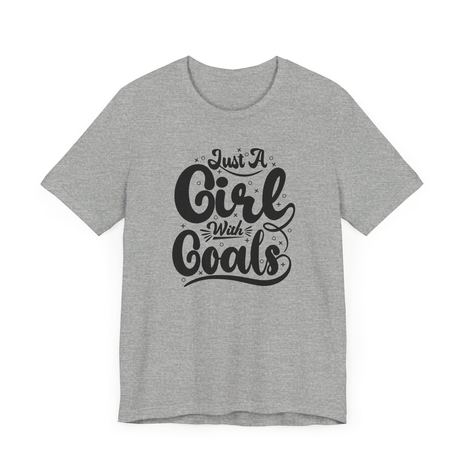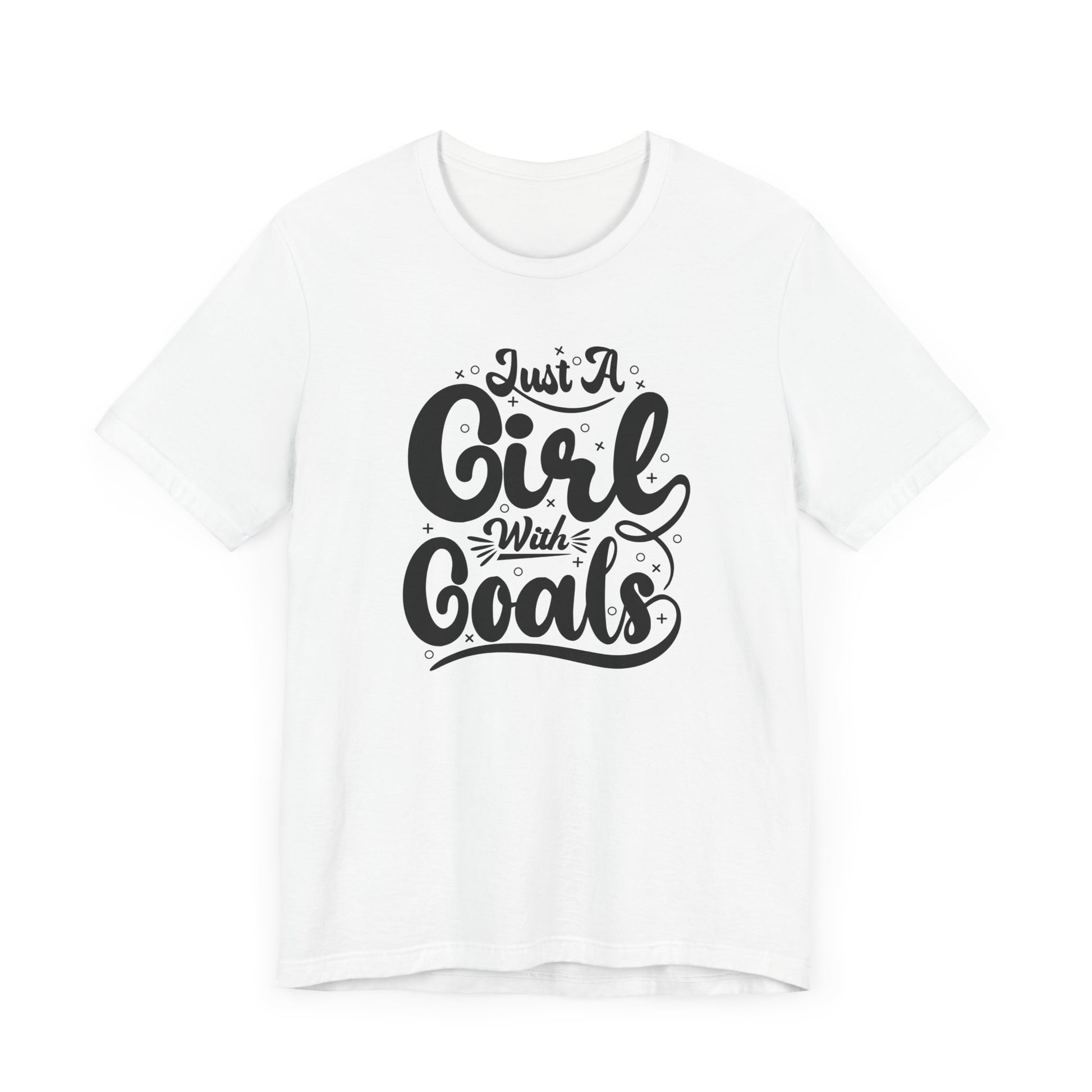 Ce t-shirt à manches courtes unisexe en jersey avec le motif « JUST A GIRL WITH GOALS » respire la motivation et l'autonomisation. Parfait pour la femme ambitieuse qui se concentre sur la réalisation de ses rêves. Idéal pour les tenues décontractées, les séances de gym ou la motivation quotidienne. Idéal pour les événements d'autonomisation des femmes, la Journée internationale de la femme et pour un usage quotidien.
