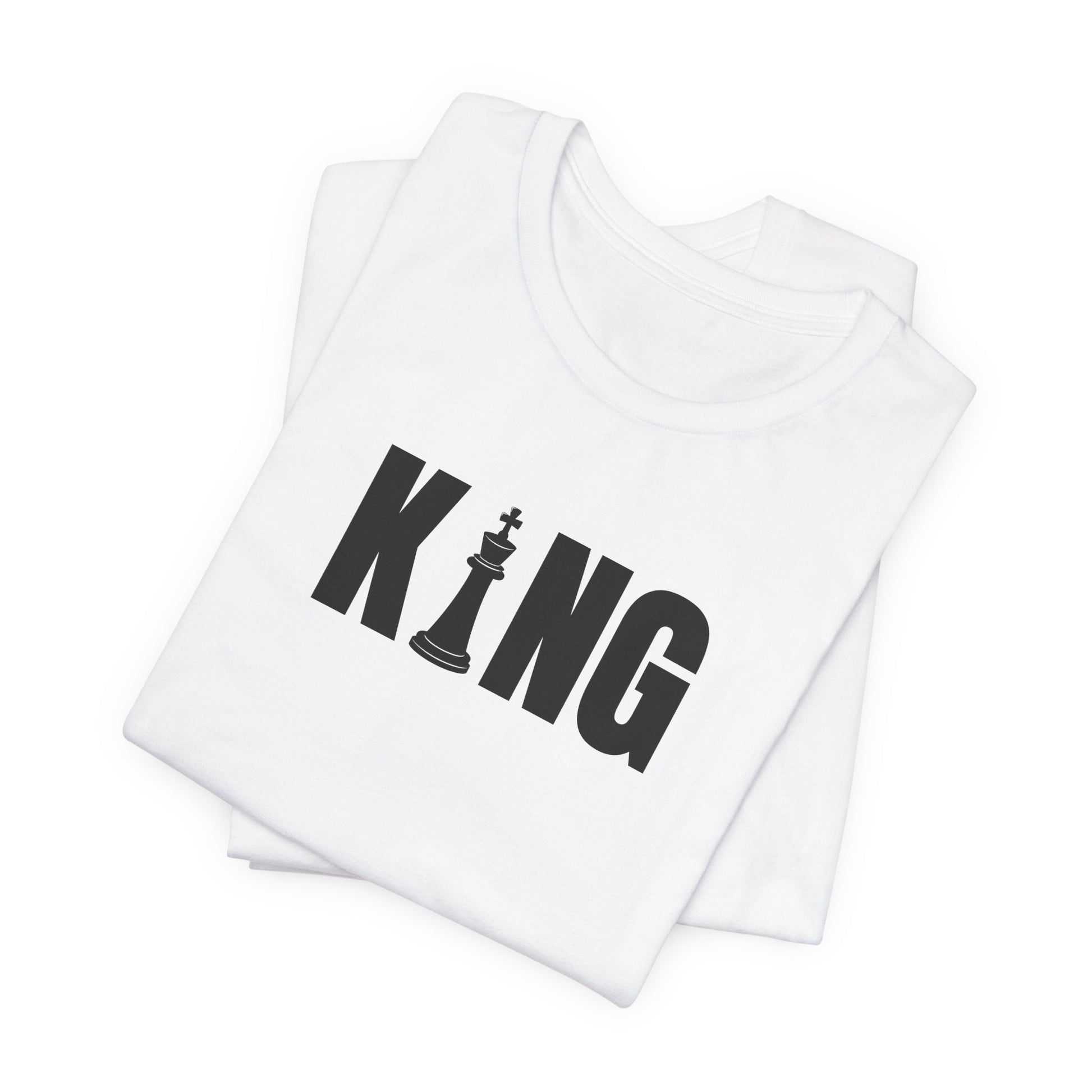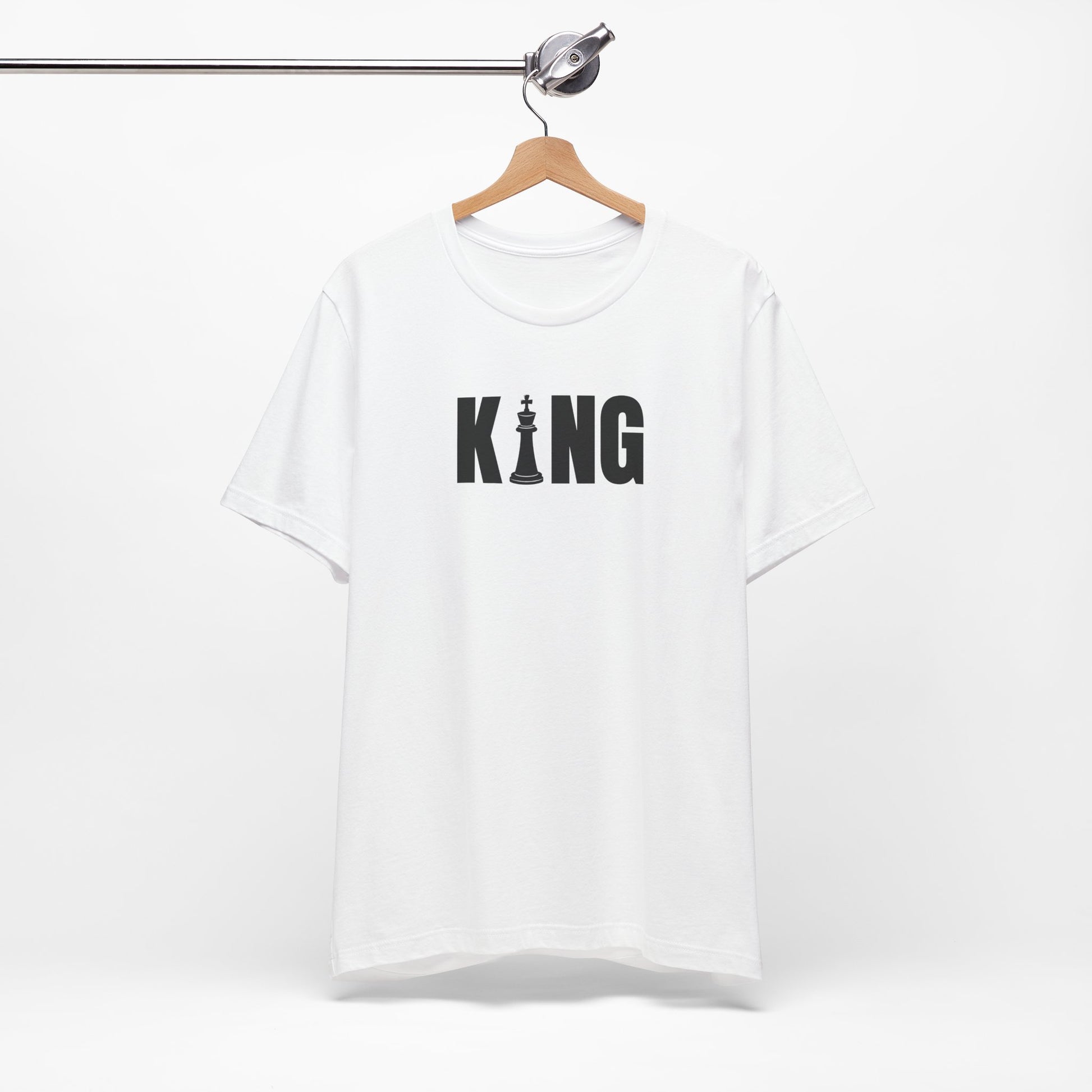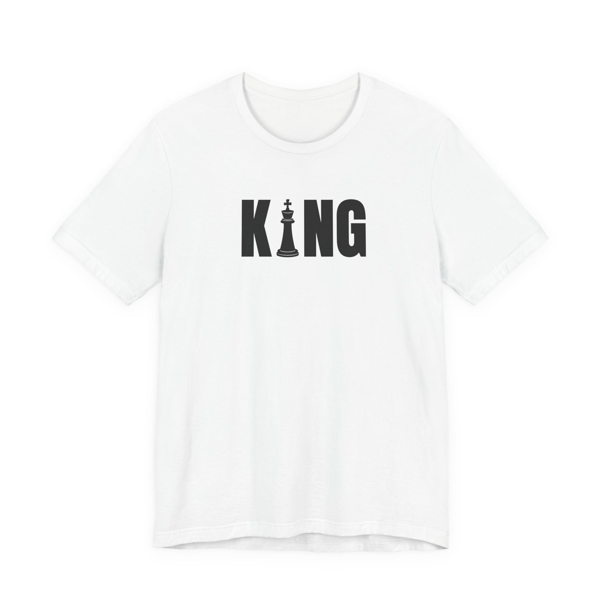 This King Chess Graphic T-Shirt is perfect for game lovers who enjoy a casual and comfortable style. It offers a classic fit that can be worn in casual or semi-formal settings. Made with 100% Airlume combed and ring-spun cotton, this lightweight tee is breathable and perfect for active or leisure wear. The graphic design adds a fun element to the shirt, making it a great addition to a game night outfit or a casual day look. Ideal for adults who enjoy playing chess or appreciate the game's strategic nature.