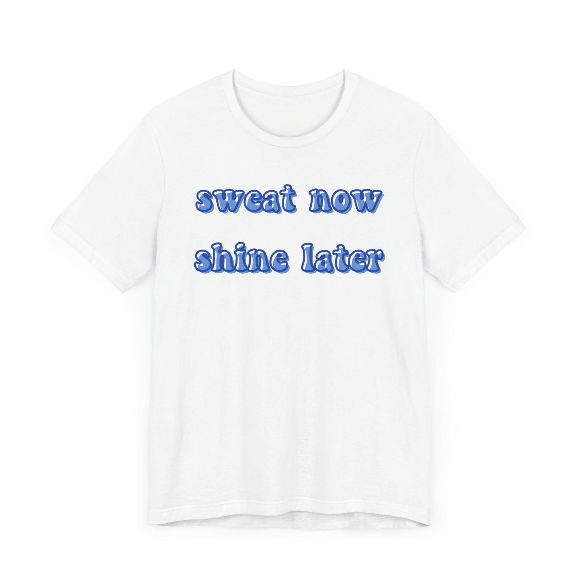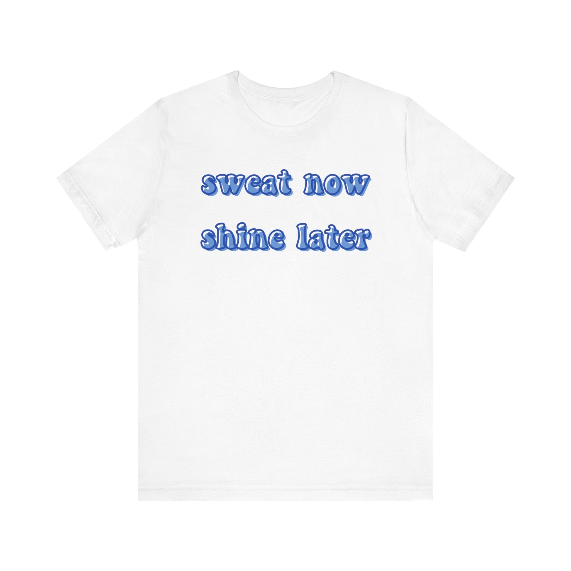 Stay motivated and inspired with this 'Sweat Now Shine Later' unisex tee. This tee is perfect for active individuals looking for comfortable and breathable clothing to wear during workouts or casual outings. It's ideal for fitness enthusiasts, gym-goers, and anyone seeking a positive mantra to keep them going.