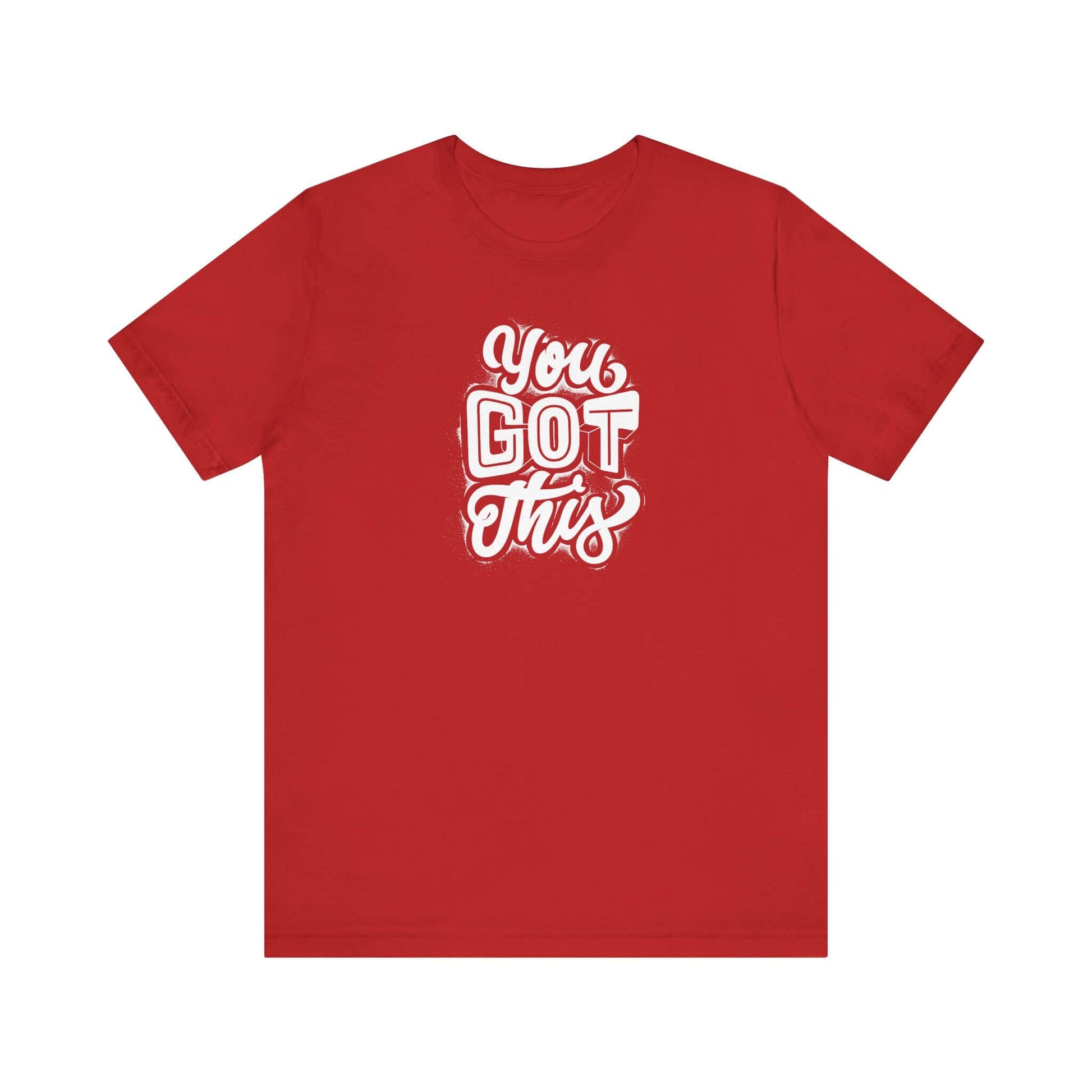 Motivational Unisex Tee - 'You Got This' Red Short Sleeve T-Shirt. This t-shirt exudes positivity and empowerment, making it perfect for anyone in need of a little extra motivation. It can be worn casually or even dressed up for a semi-formal setting, making it versatile for various occasions. Ideal for those who appreciate comfortable, breathable, and sustainably made clothing. Perfect for occasions like birthdays, graduations, or as a daily pick-me-up.