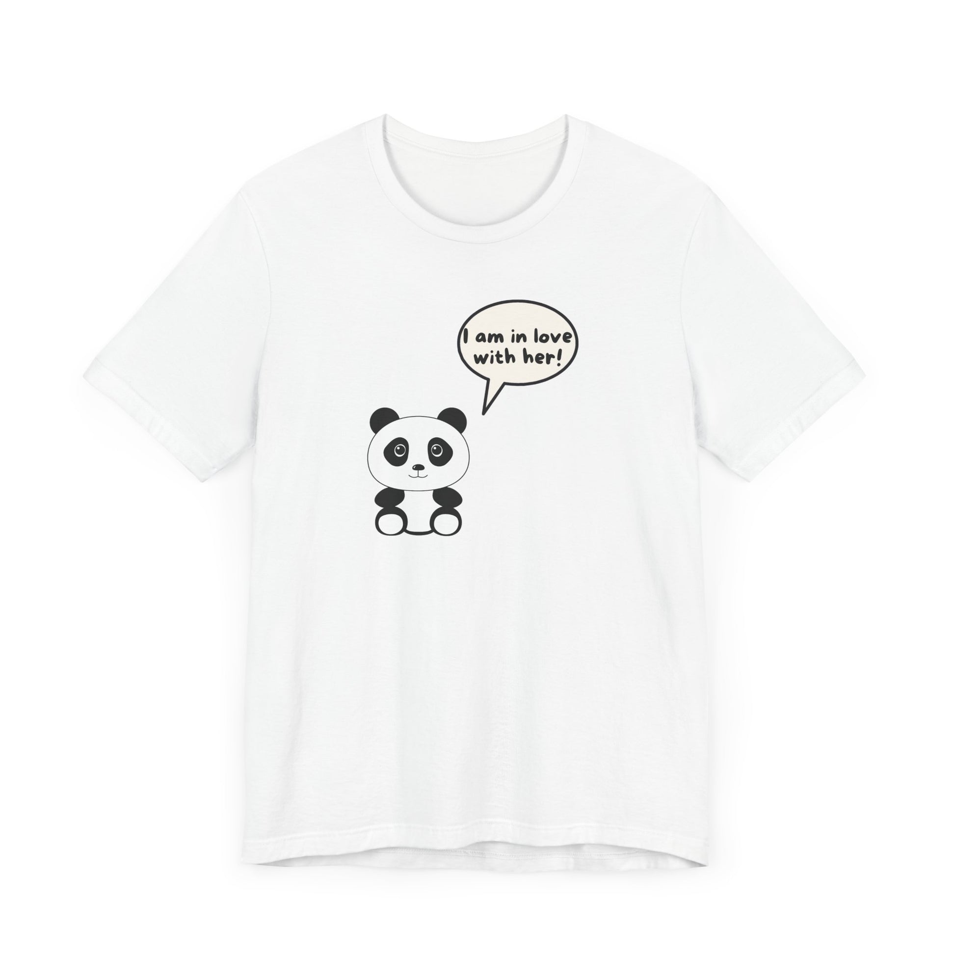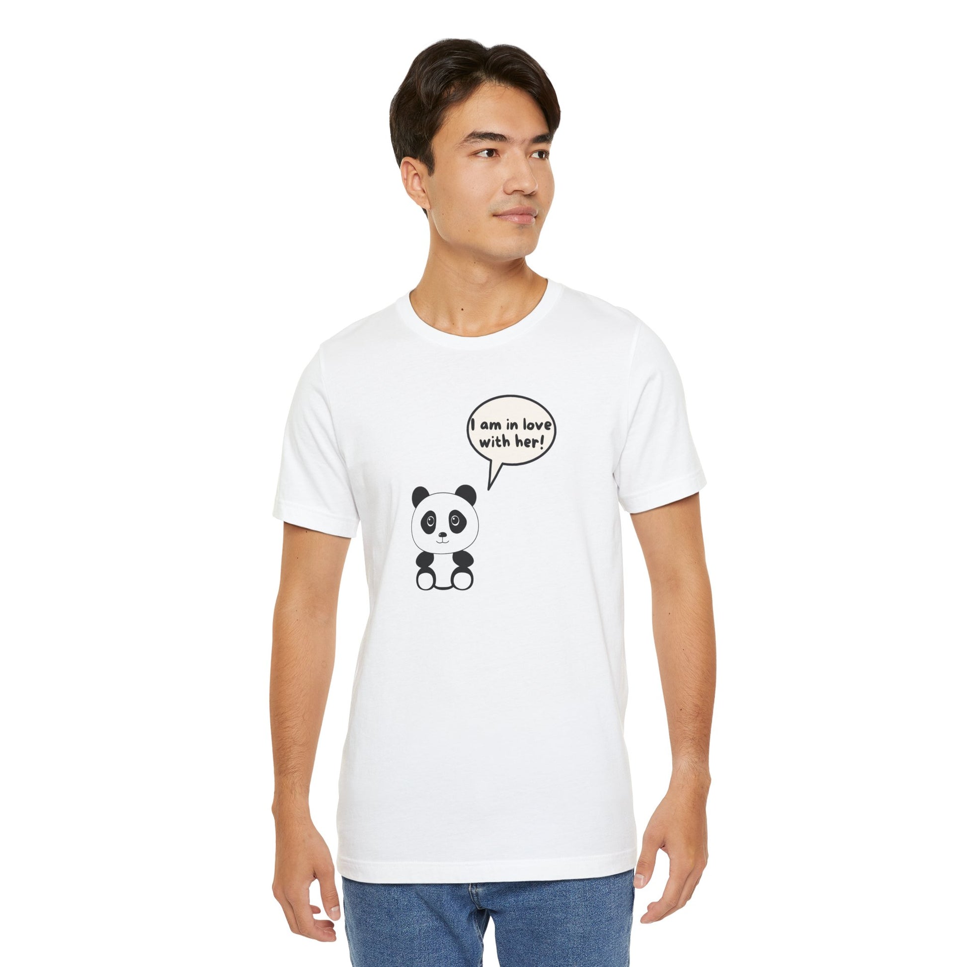 This Cute Panda Love T-Shirt - "I Am in Love with Her" is perfect for anyone who adores pandas and wants to showcase their love for someone special. The design exudes a cute and romantic vibe, making it ideal for casual wear or as a thoughtful gift for a loved one. It is relevant for occasions like Valentine's Day, anniversaries, or any day you want to express your affection.