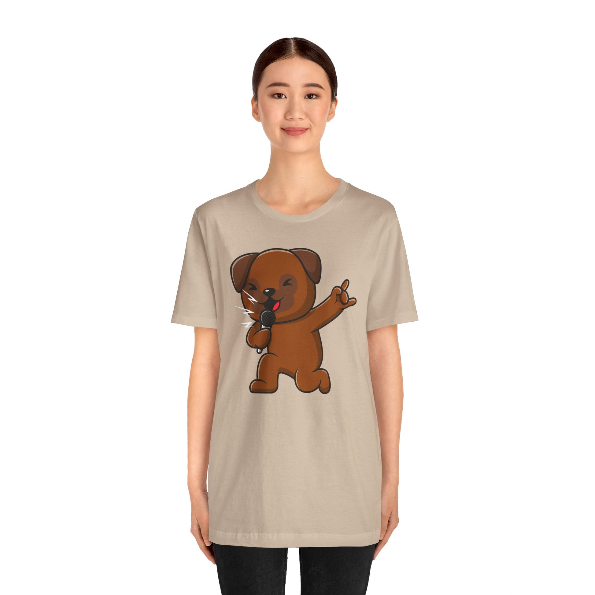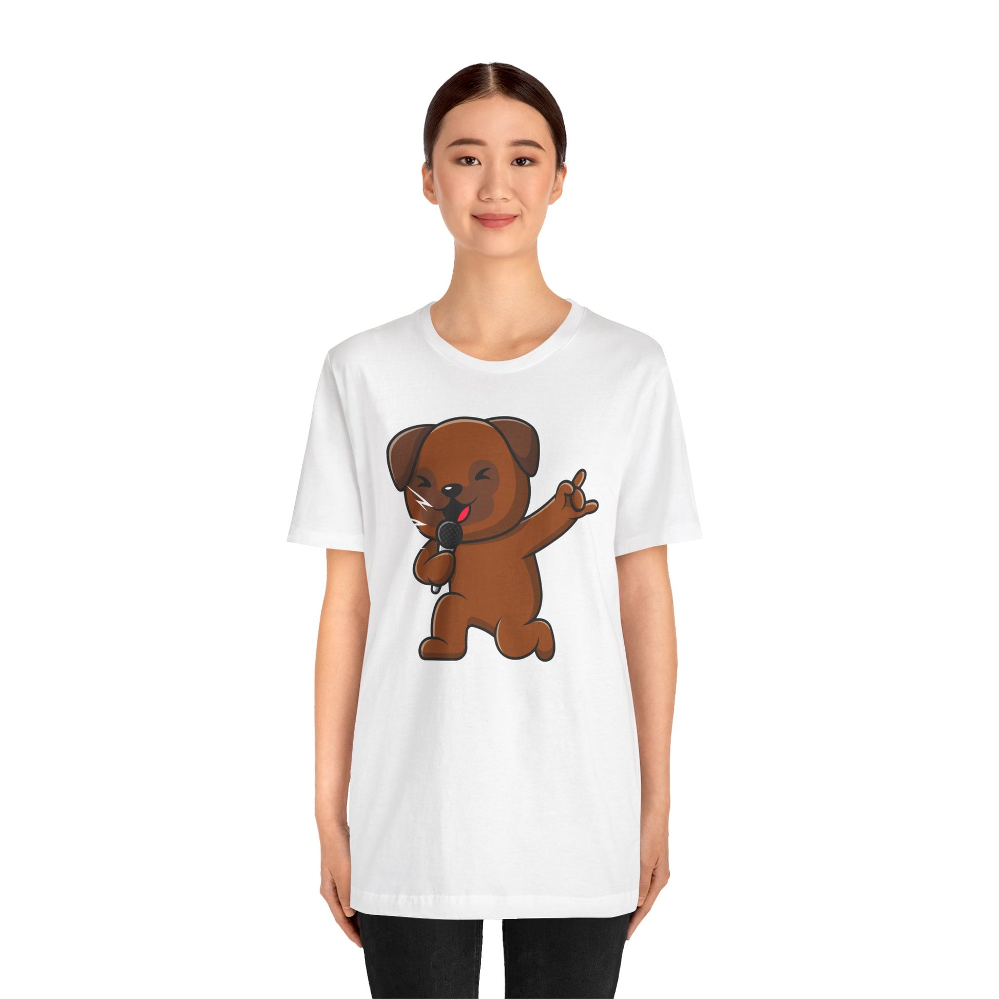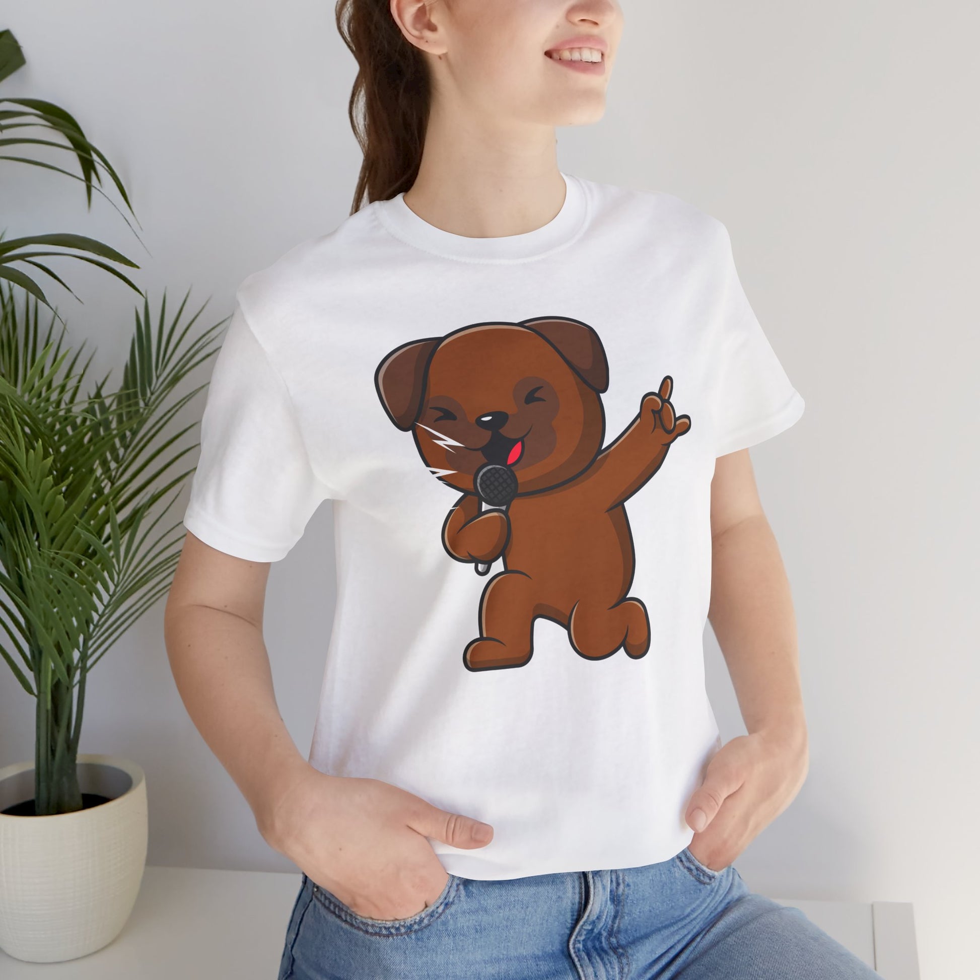 Express your love for music with this Unisex Jersey Short Sleeve Tee featuring a PET SINGING MICROPHONE design. Made with 100% Airlume combed and ring-spun cotton, this lightweight shirt is perfect for layering and staying comfortable. Ideal for music lovers and those who appreciate unique designs. Suitable for casual wear or as a gift for birthdays, concerts, music festivals, and music-themed occasions.