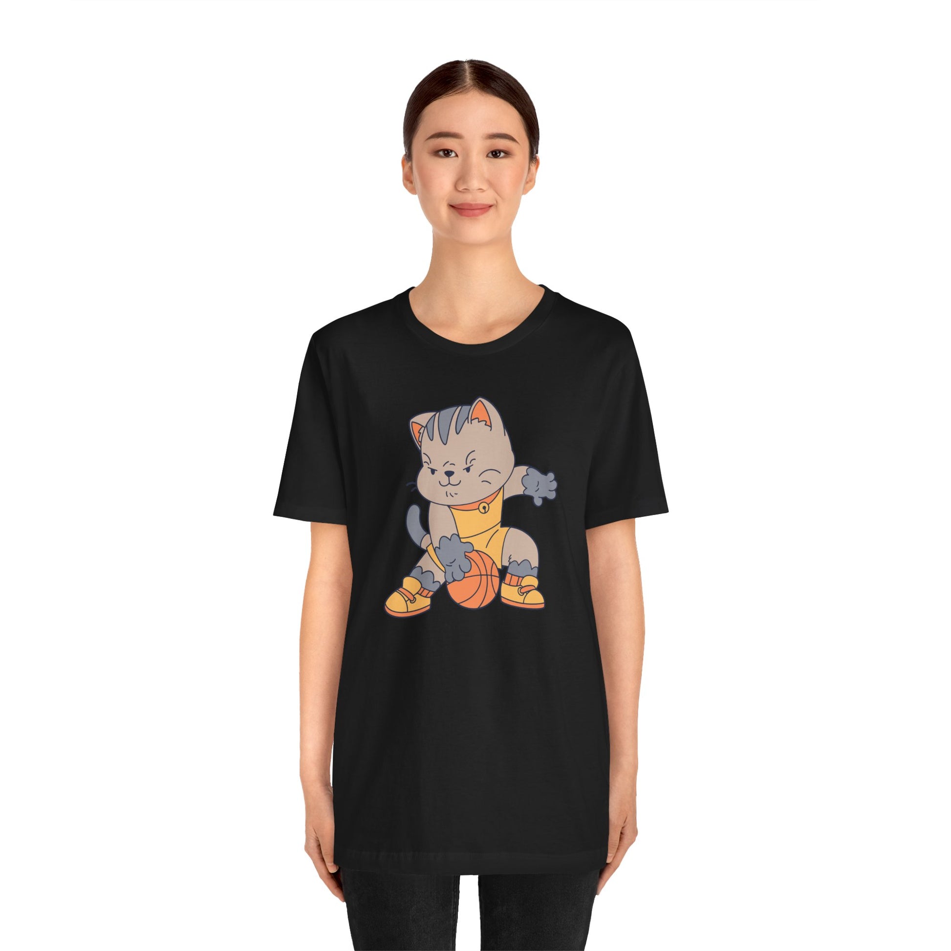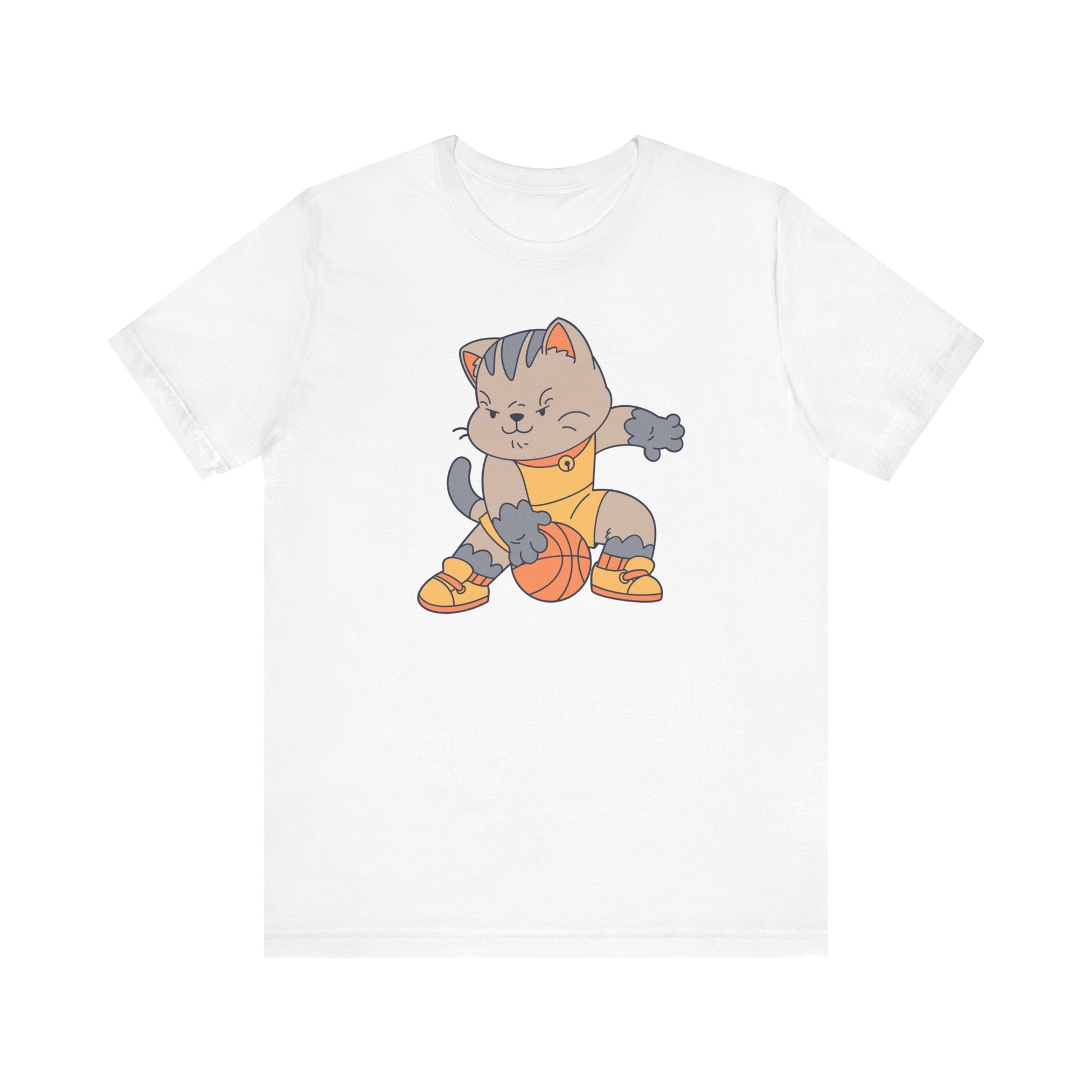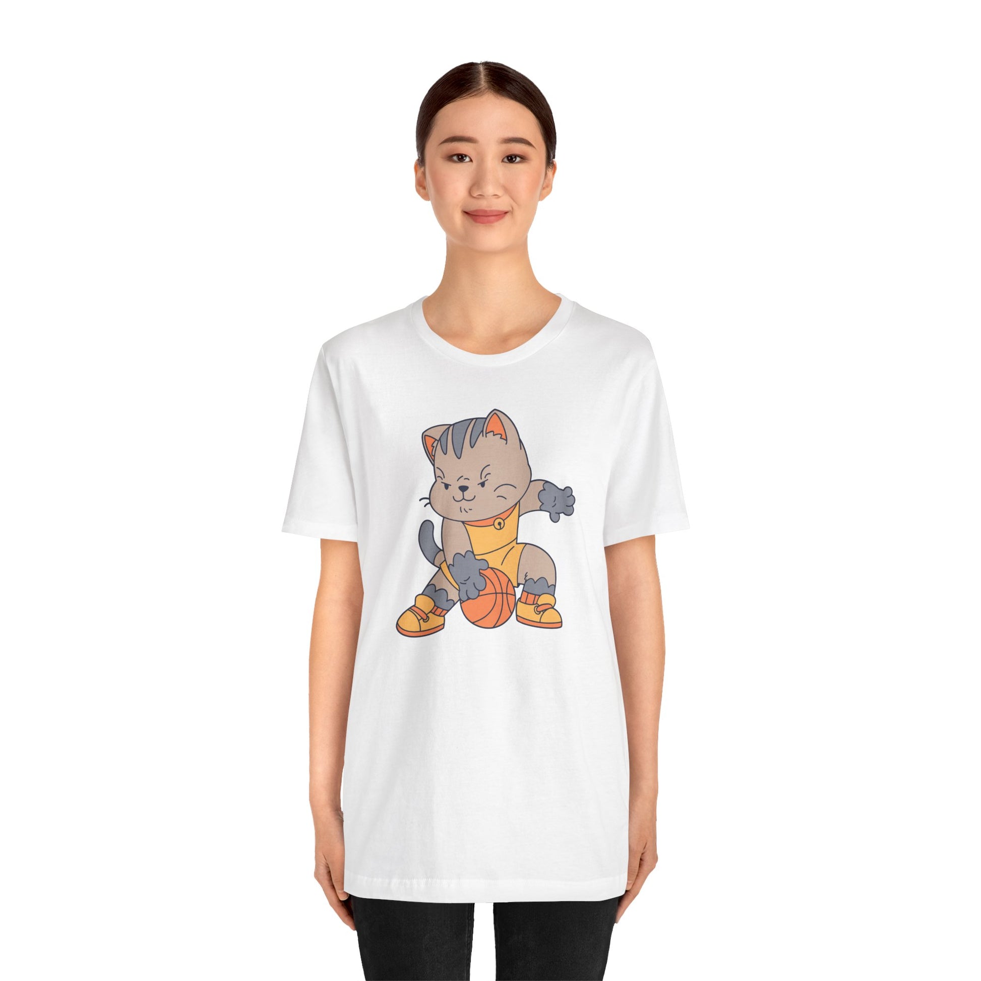 This Unisex Jersey Short Sleeve Tee featuring a CAT BASKETBALL design is perfect for casual outings and sports enthusiasts. Made with 100% Airlume combed and ring-spun cotton, this lightweight tee is breathable and great for layering. The retail fit and crew neckline add a classic touch, making it versatile for various occasions. Ideal for cat lovers and sports fans, this tee is suitable for everyday wear, game nights, and cat-themed events.