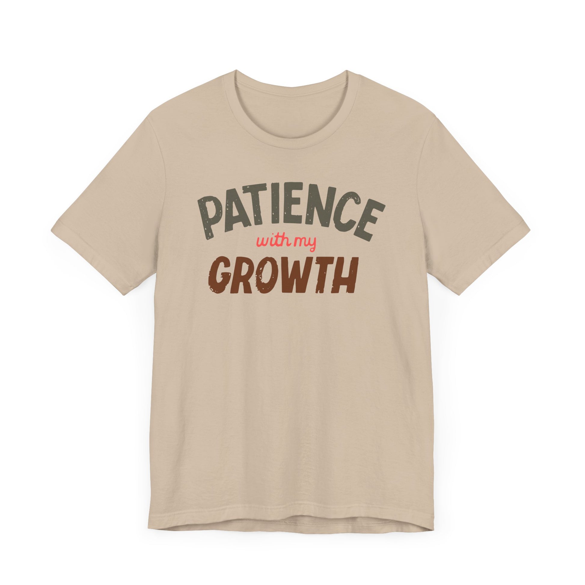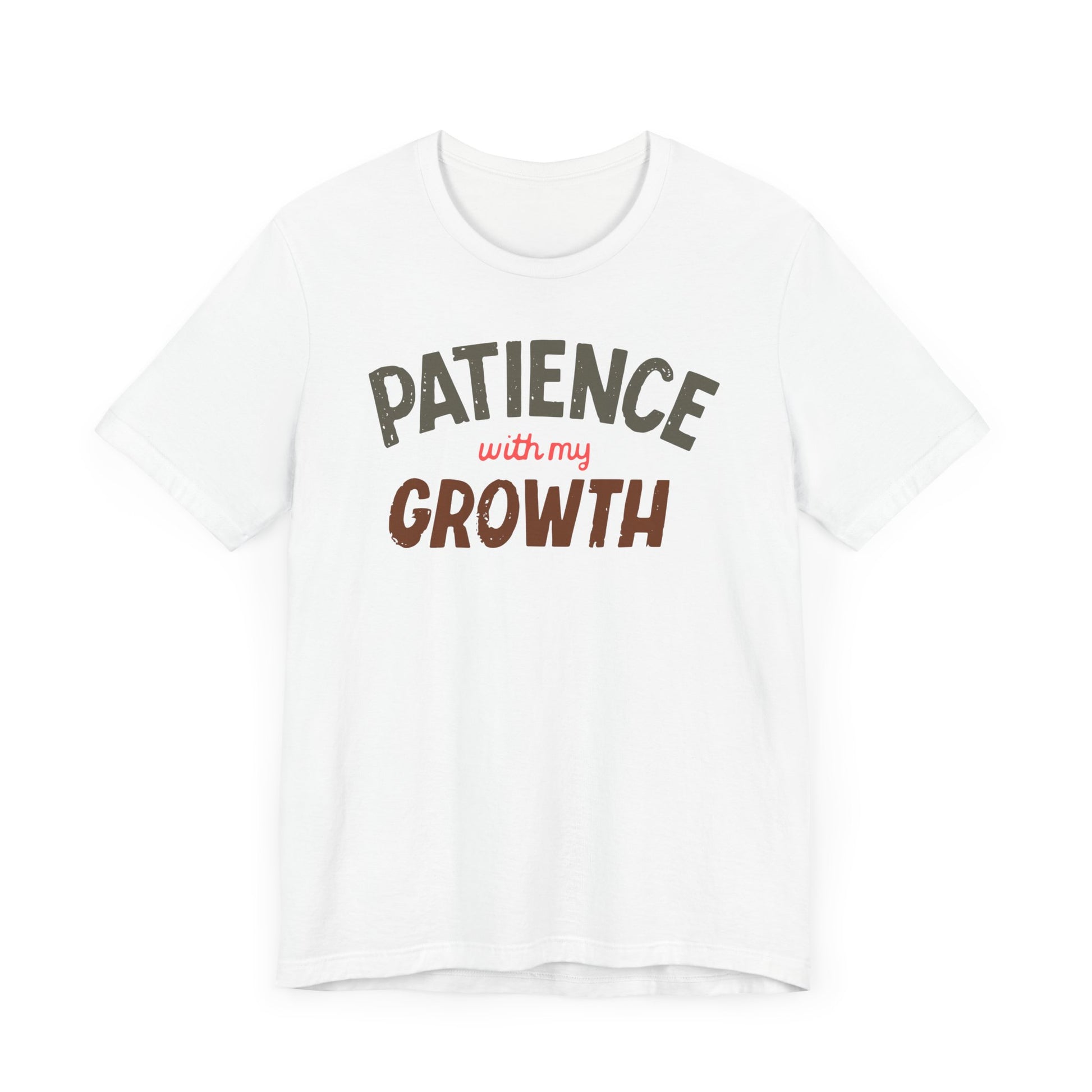 This Unisex Jersey Short Sleeve T-Shirt with the design 'PATIENCE WITH MY GROWTH' exudes a laid-back and casual vibe, perfect for everyday wear. It is a great addition to anyone's wardrobe who values personal growth and patience. This tee is relevant for occasions like casual outings, lounging at home, or even as a thoughtful gift for someone on a journey of self-improvement.