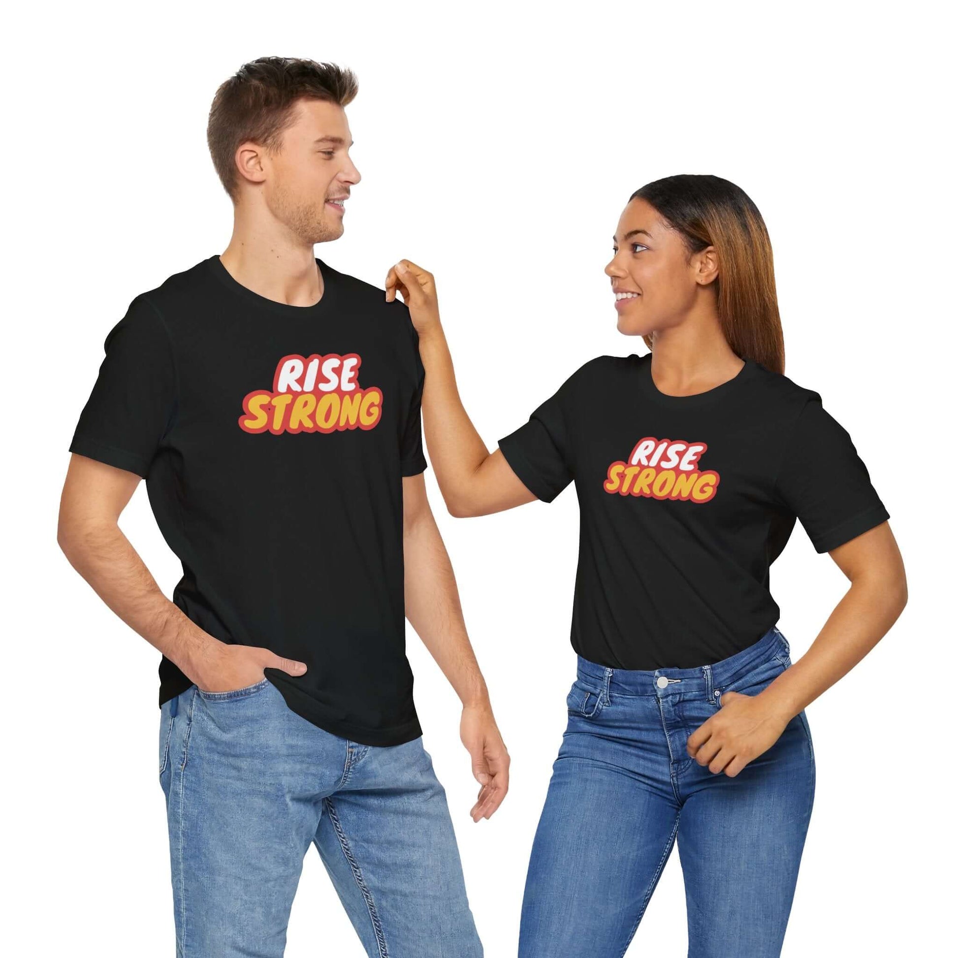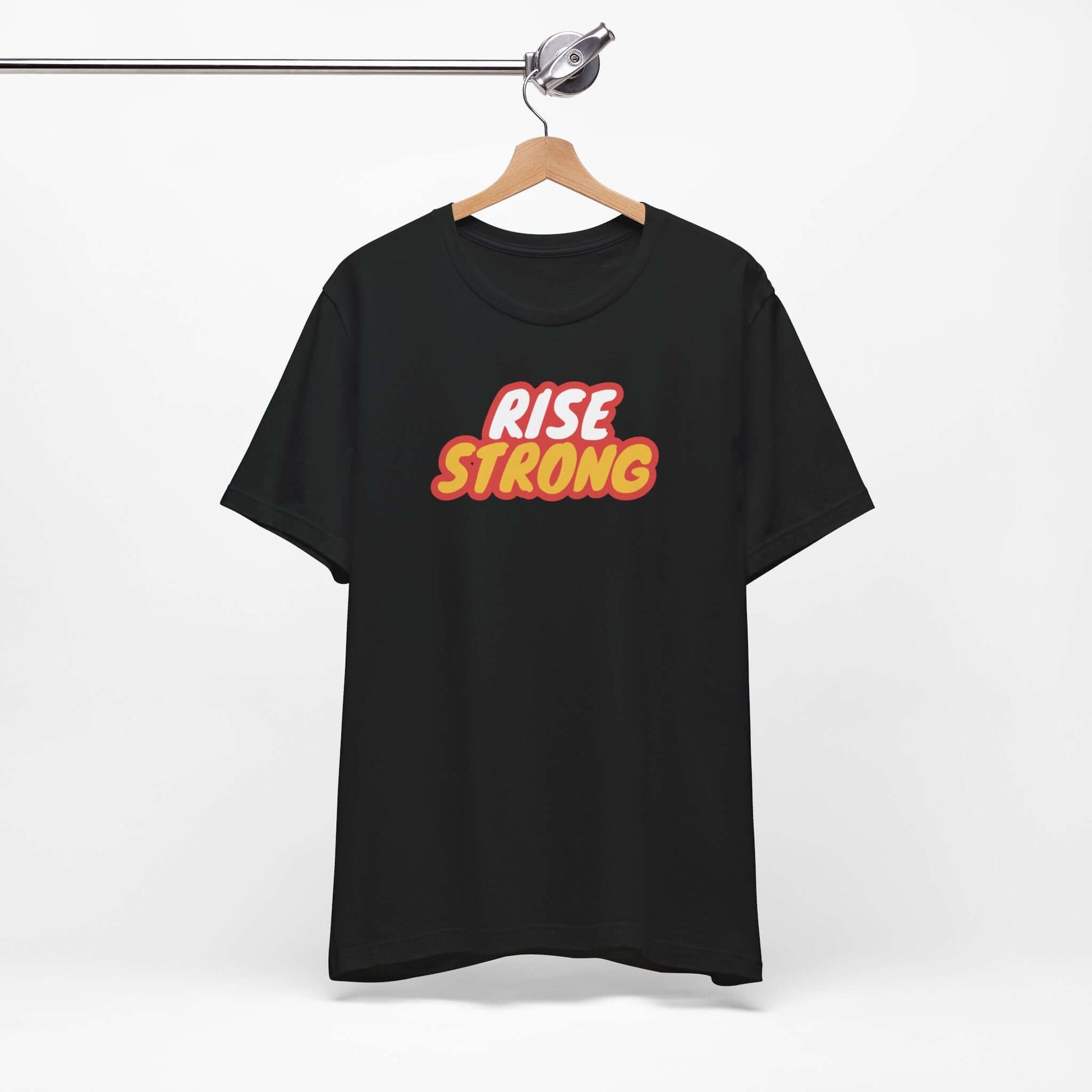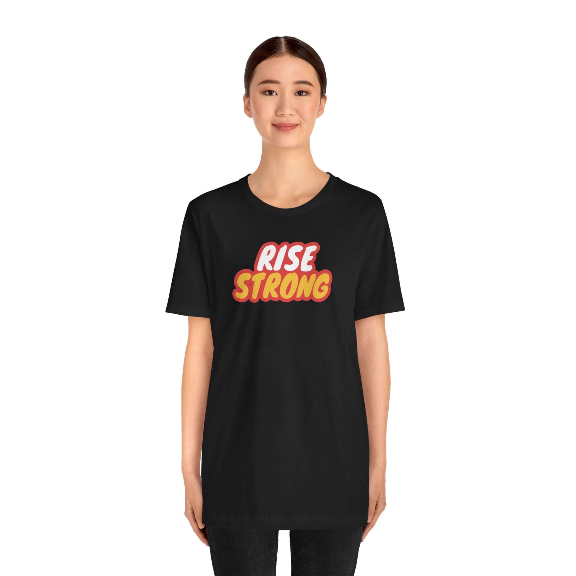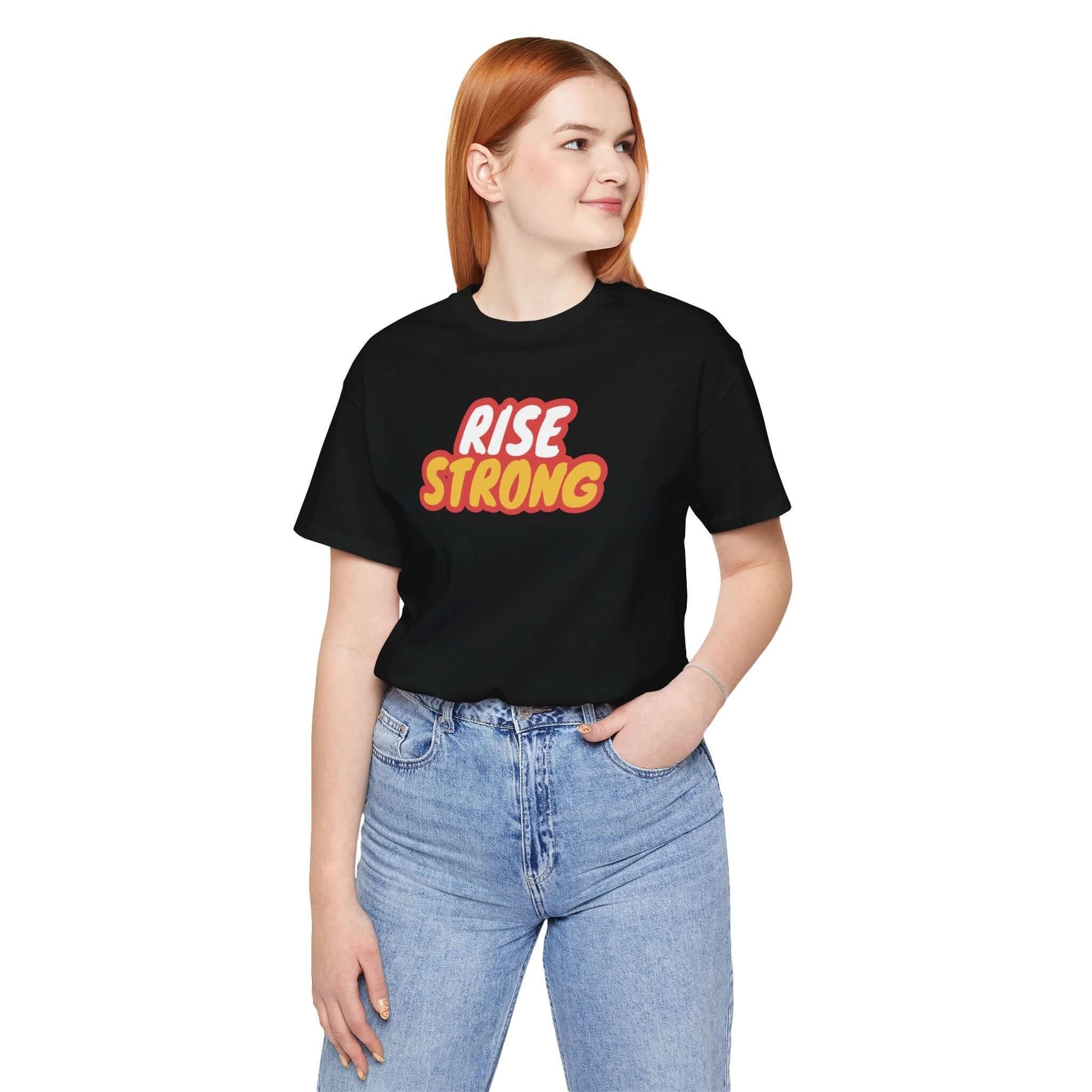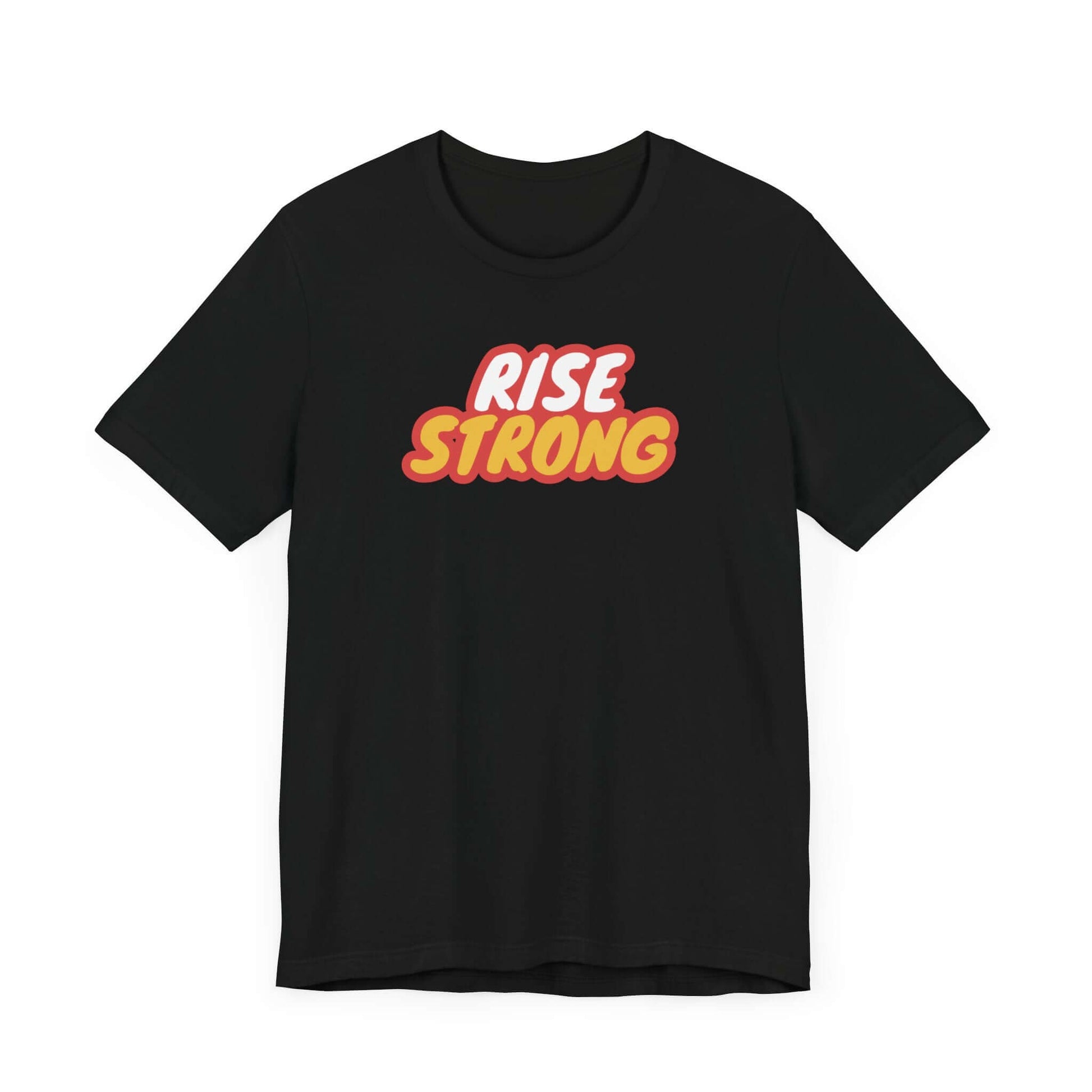 Stay motivated and spread positivity with this Rise Strong Unisex Tee. Perfect for fitness enthusiasts, this motivational graphic T-shirt can be worn for a workout session or as casual wear. It makes a great inspirational gift for friends and family, radiating positive vibes wherever you go. Suitable for adults, this lightweight cotton tee with a retail fit is ideal for layering and can be styled in various ways for semi-formal settings.