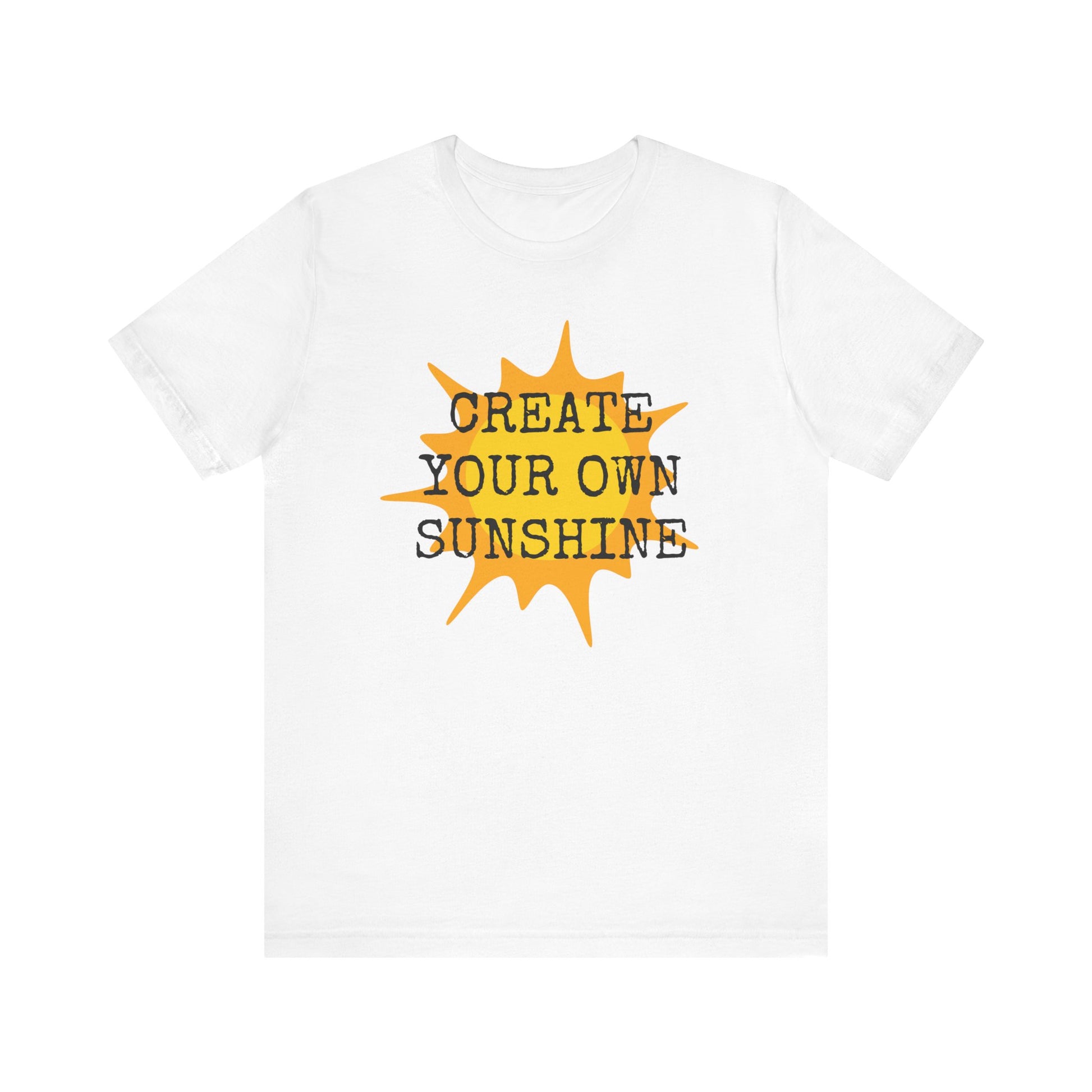 Stay positive and create your own sunshine with this Unisex Jersey Short Sleeve Tee. Made with 100% Airlume combed and ring-spun cotton, this lightweight shirt is perfect for active and leisure wear. The retail fit makes it suitable for casual and semi-formal settings, while the tear-away label ensures comfort. This tee is ideal for those who want to spread positivity and brightness in their lives, making it a great addition to your wardrobe for everyday wear, outdoor activities, or casual gatherings.