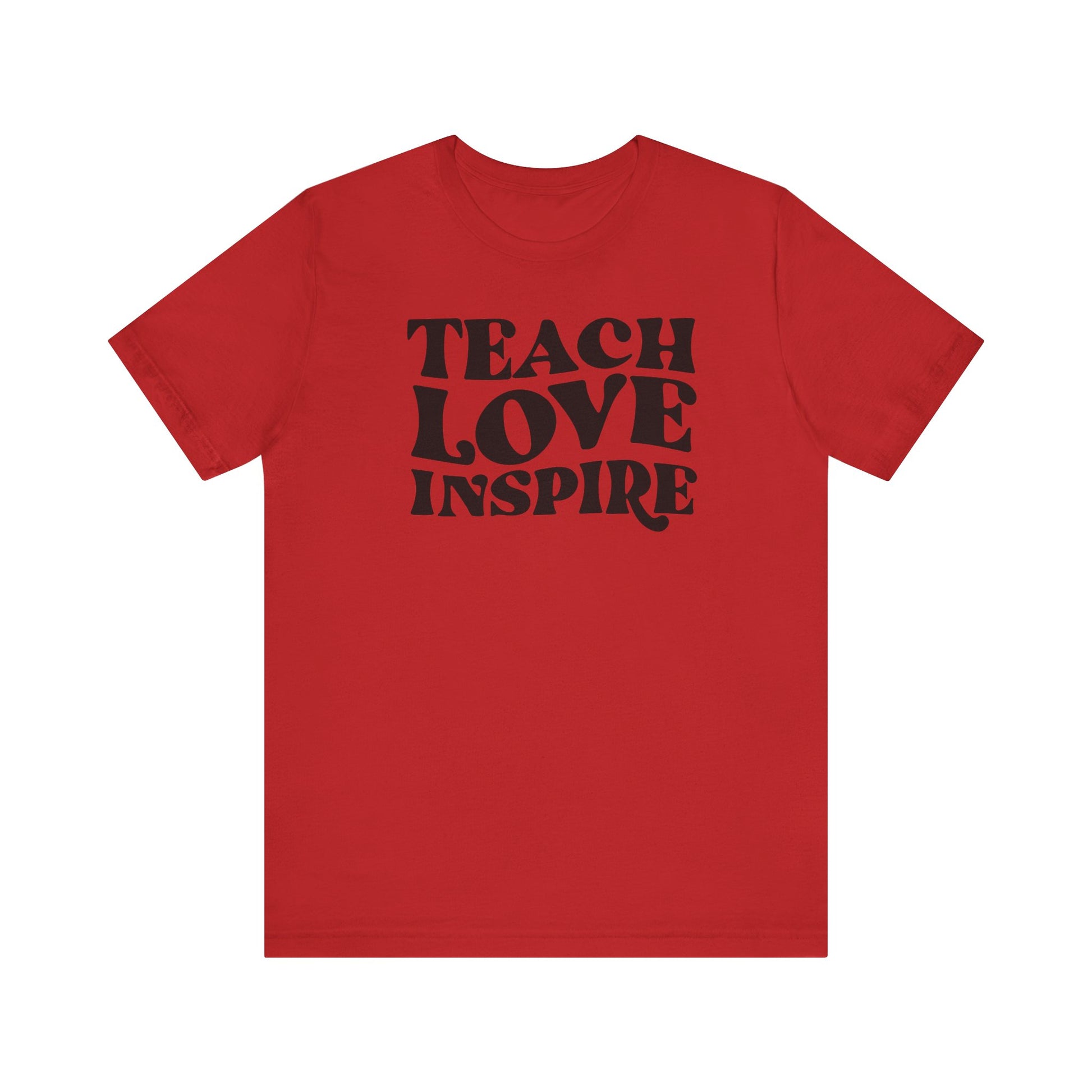 TEACH, love, inspire - This Unisex Jersey Short Sleeve Tee exudes a sense of creativity and positivity. Perfect for teachers, educators, and those who value spreading love and inspiration. Ideal for back-to-school season, teacher appreciation day, and as a thoughtful gift for mentors.