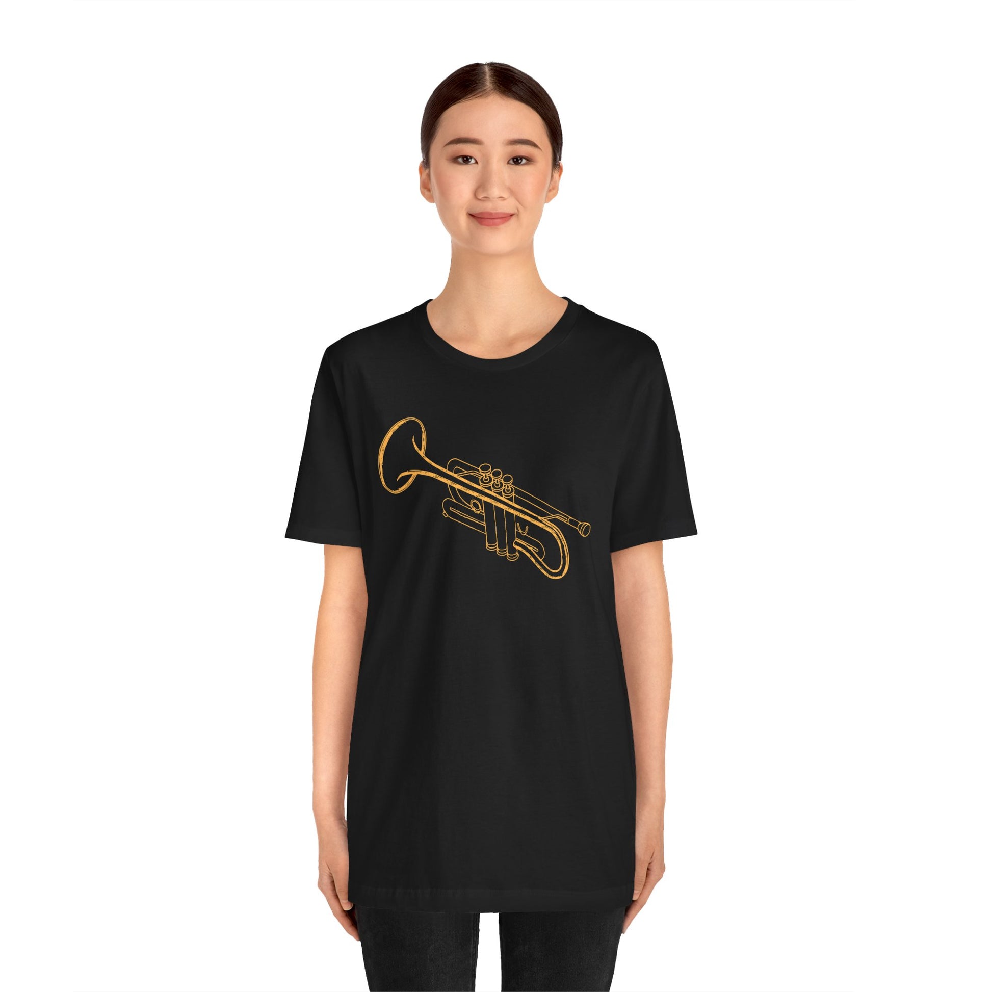 This Unisex Jersey Short Sleeve Tee offers express delivery and features a trumpet design. Made with 100% Airlume combed and ring-spun cotton, this lightweight fabric is perfect for active and leisure wear. The retail fit and crew neckline make it suitable for casual and semi-formal settings. Bella+Canvas ensures ethical manufacturing practices, making it a conscious choice for the environmentally and socially conscious buyer. Perfect for music lovers, this tee is ideal for concerts, music festivals, or casual everyday wear.